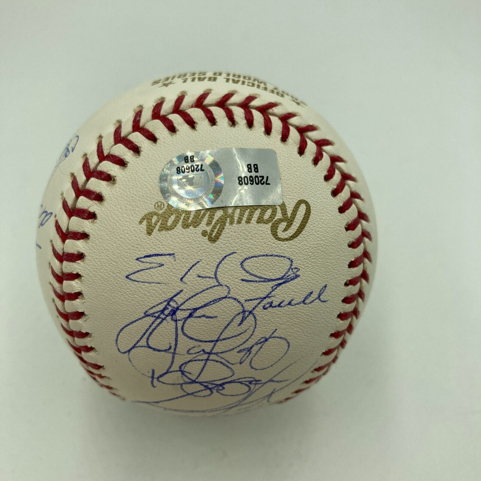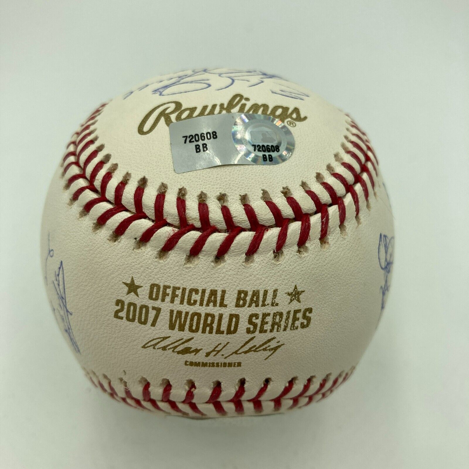 This pristine, beautiful Rawlings 2007 World Series Official Baseball has been personally hand-signed in blue ball point pen by 24 members of the Boston Red Sox 2007 World Series Champions. Ball is numbered 184 of 275 and features Manager Terry Francona's signature on the sweet spot with other signatures including David Ortiz, Curt Schilling, Dustin Pedroia, Jason Varitek, Alex Cora, Bobby Kielty, Manny Ramirez, Eric Hinske, Javier Lopez, John Farrell, Mike Lowell, Jonathan Papelbon, Kyle Snyder, Luis Alicea, Mike Timlin, Doug Mirabelli and others from the World Series Champion Boston Red Sox. Clean signatures and no smudges or spots on the ball! This museum piece is affixed with both Steiner Sports and Major League Baseball Authentication Holograms and includes Steiner Sports Certificate of Authenticity.