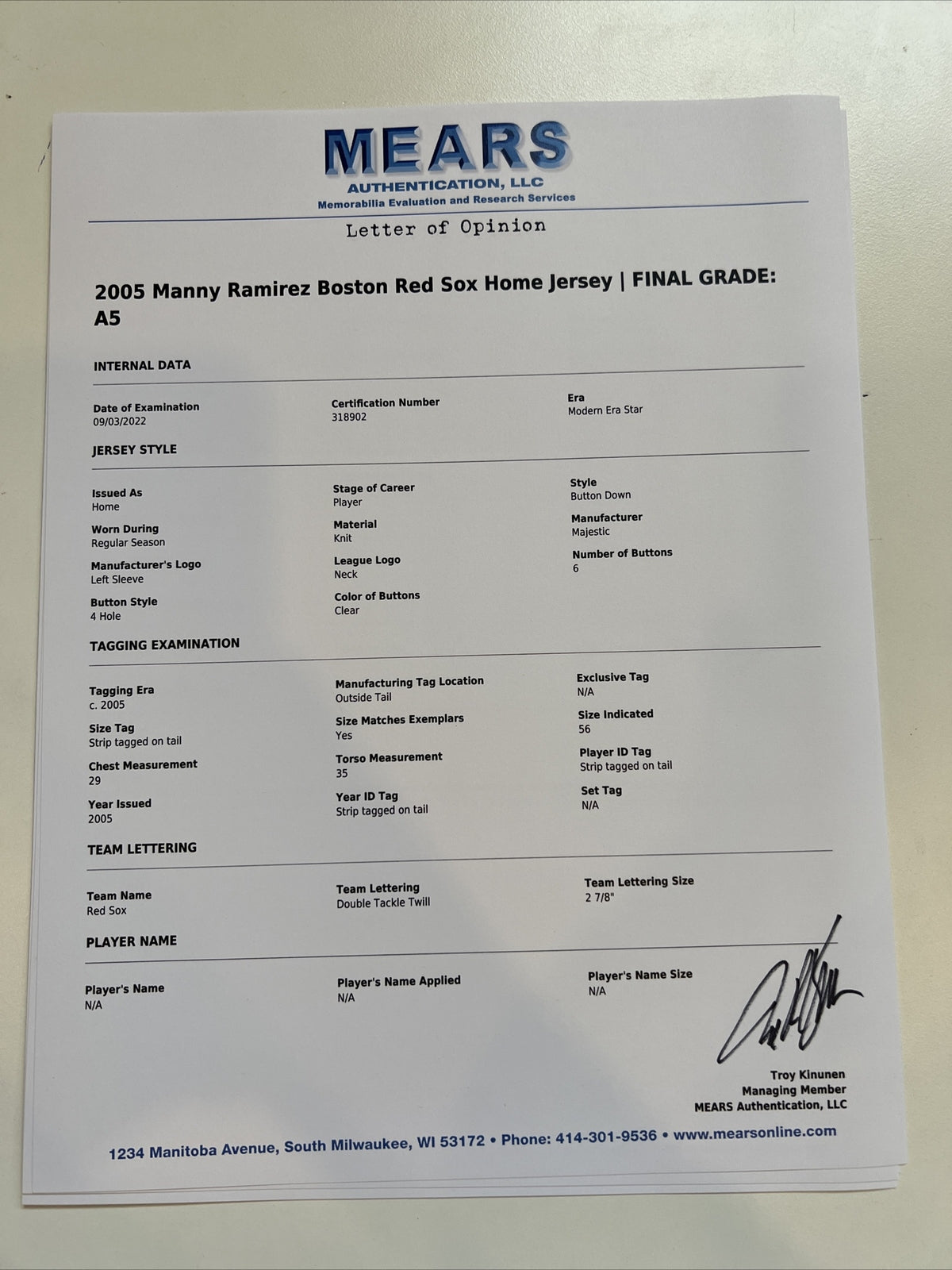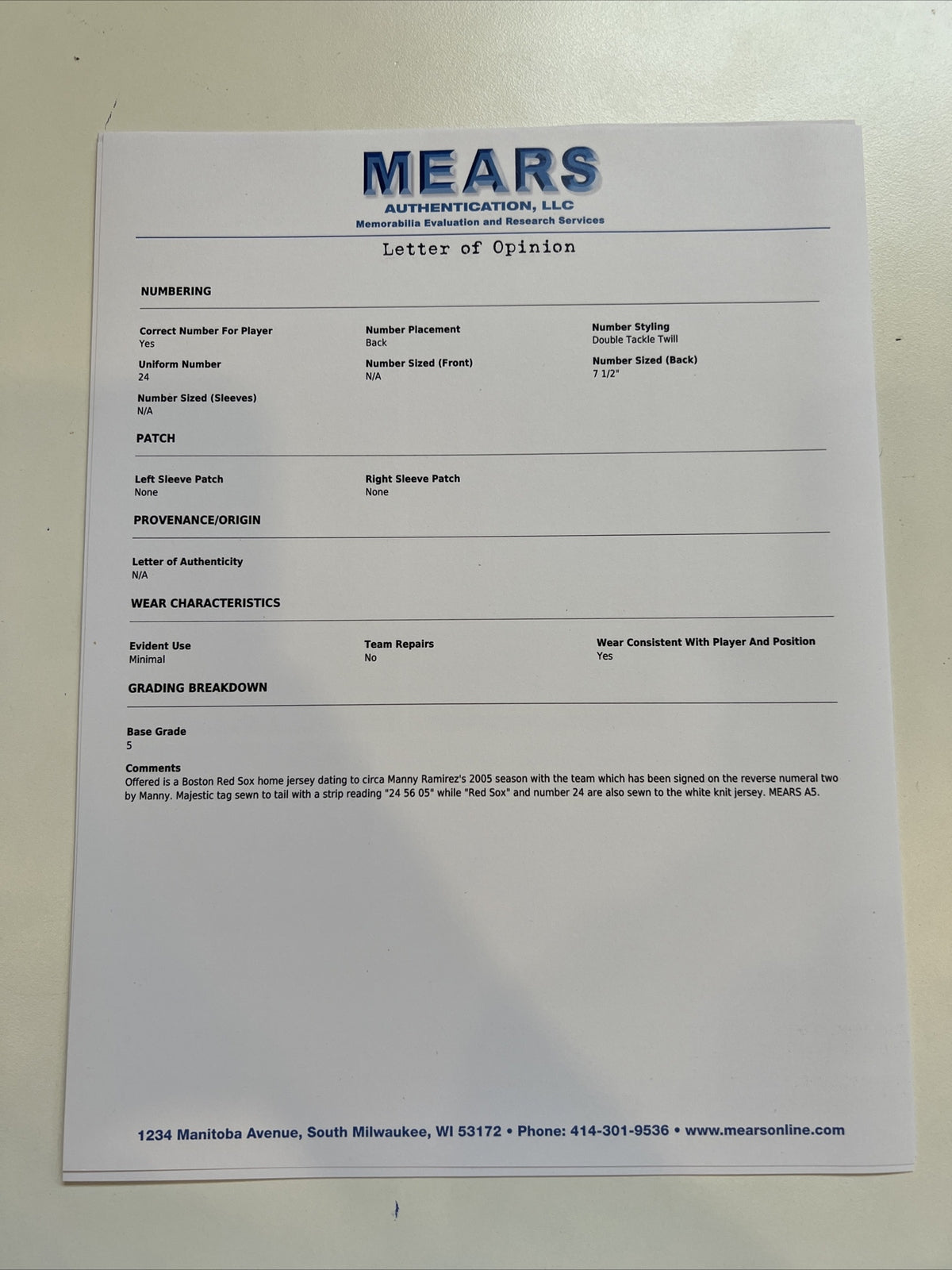 Manny Ramirez Signed Game Used 2005 Boston Red Sox Jersey With JSA & MEARS COA