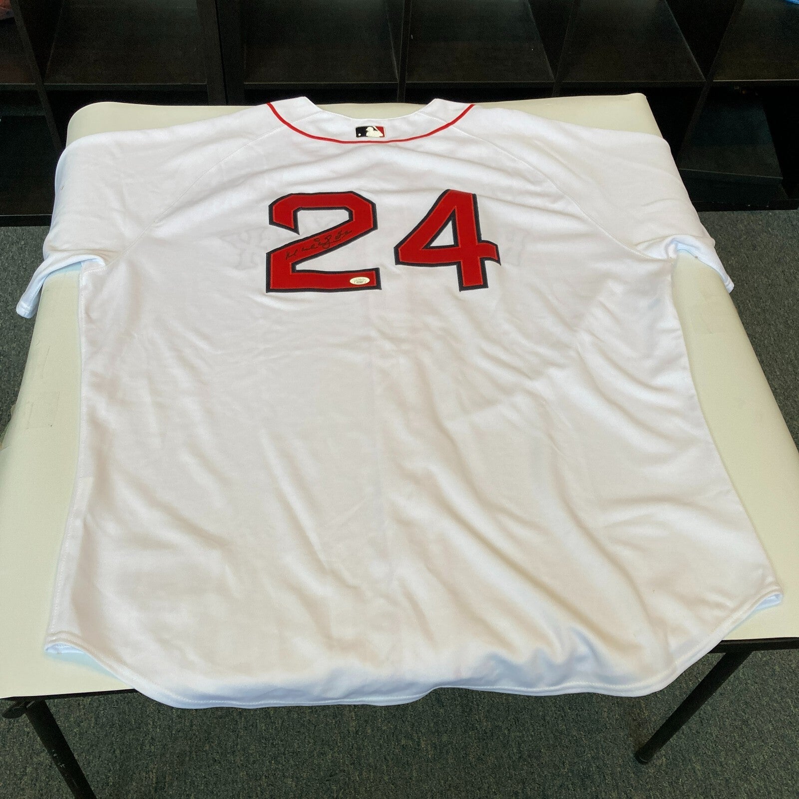2004 Boston Red Sox World Series Camps Team Signed Authentic World Series Game Model Jersey. 23 signatures with David Ortiz, Manny Ramirez, Pedro...