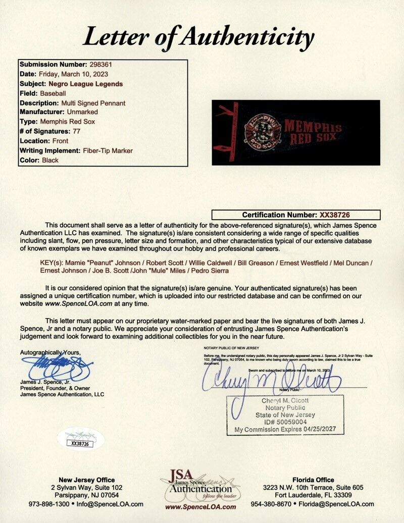 Negro League Multi-Signed Memphis Red Sox Pennant (77 AUTOS/52 DECEASED) JSA LOA