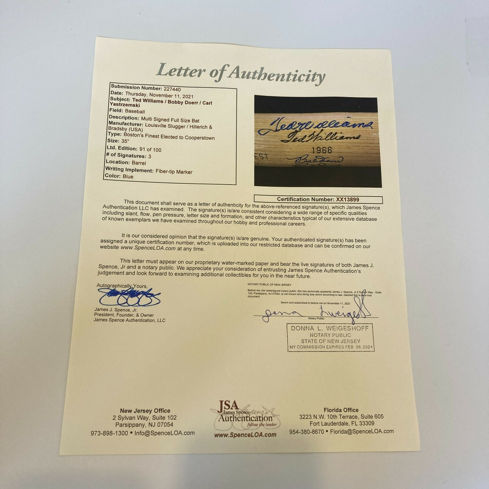 Ted Williams, Carl Yastrzemski & Bobby Doerr Boston Red Sox Legends Multi Signed Bat With JSA COA
