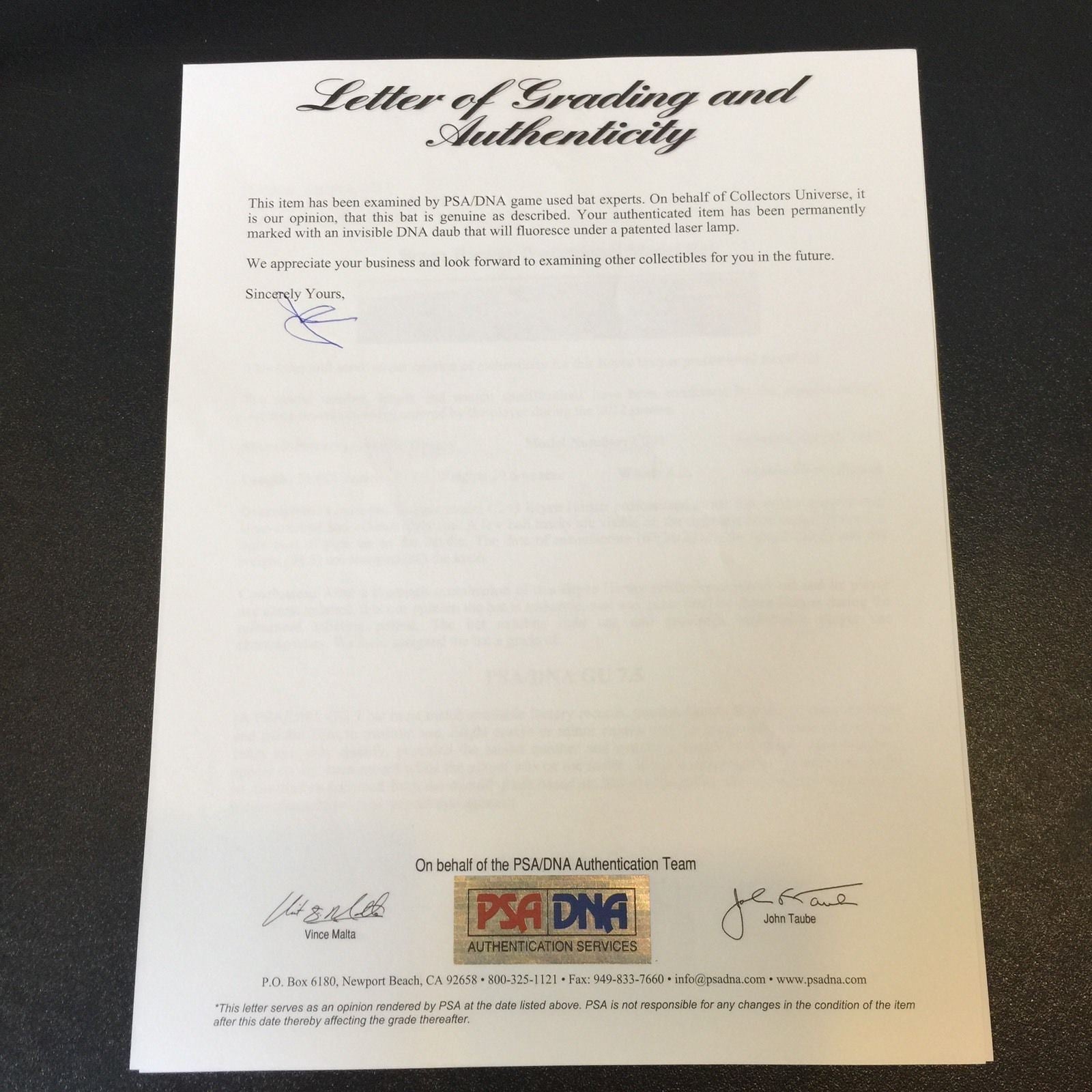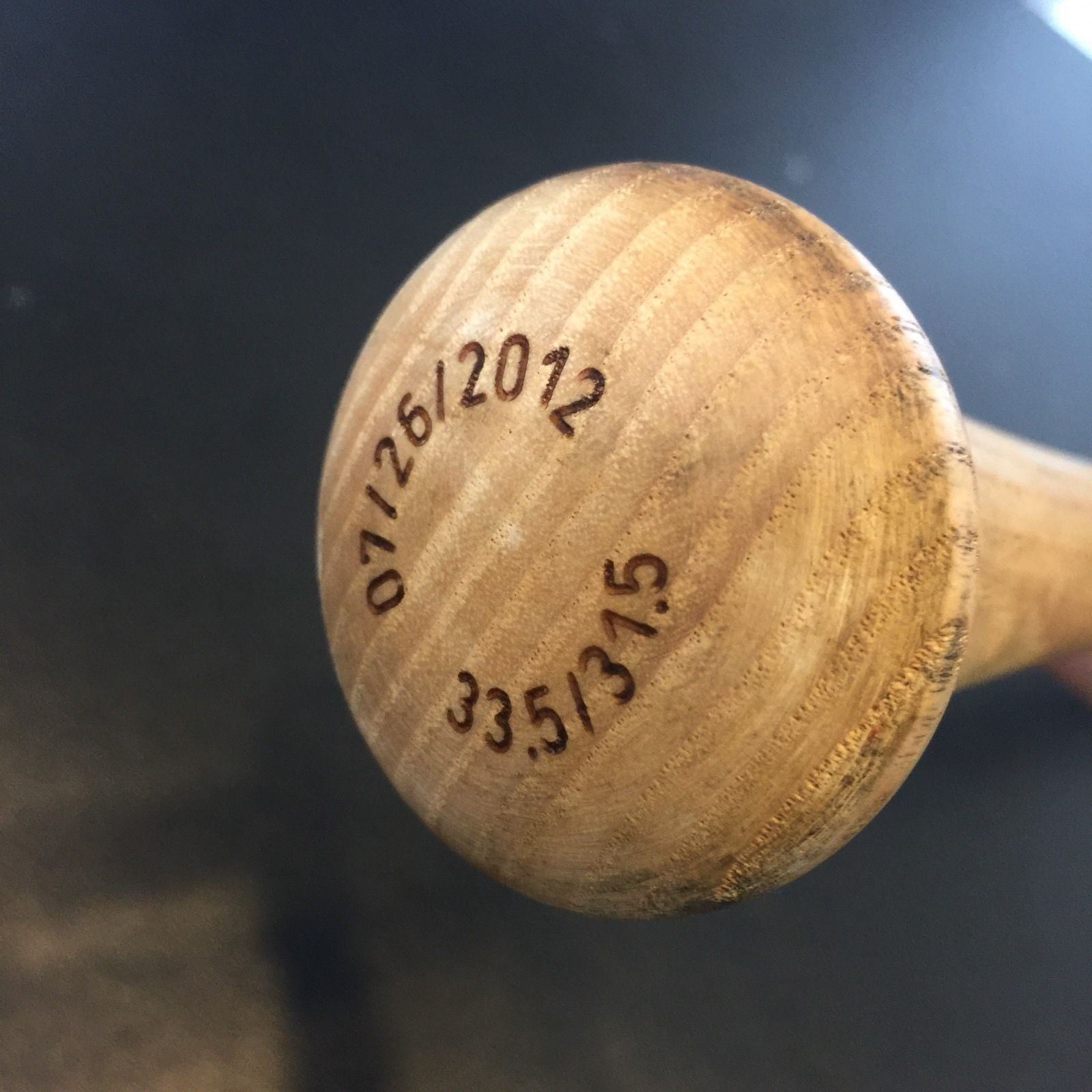 Featured in this lot is a game used Louisville Slugger bat the Harper used in 2012; his ROY campaign. This player model bat has his name engraved right above the bats sweet spot. On the knob of the bat is the date 7-26-12. Comes with full letter COA from PSA DNA.