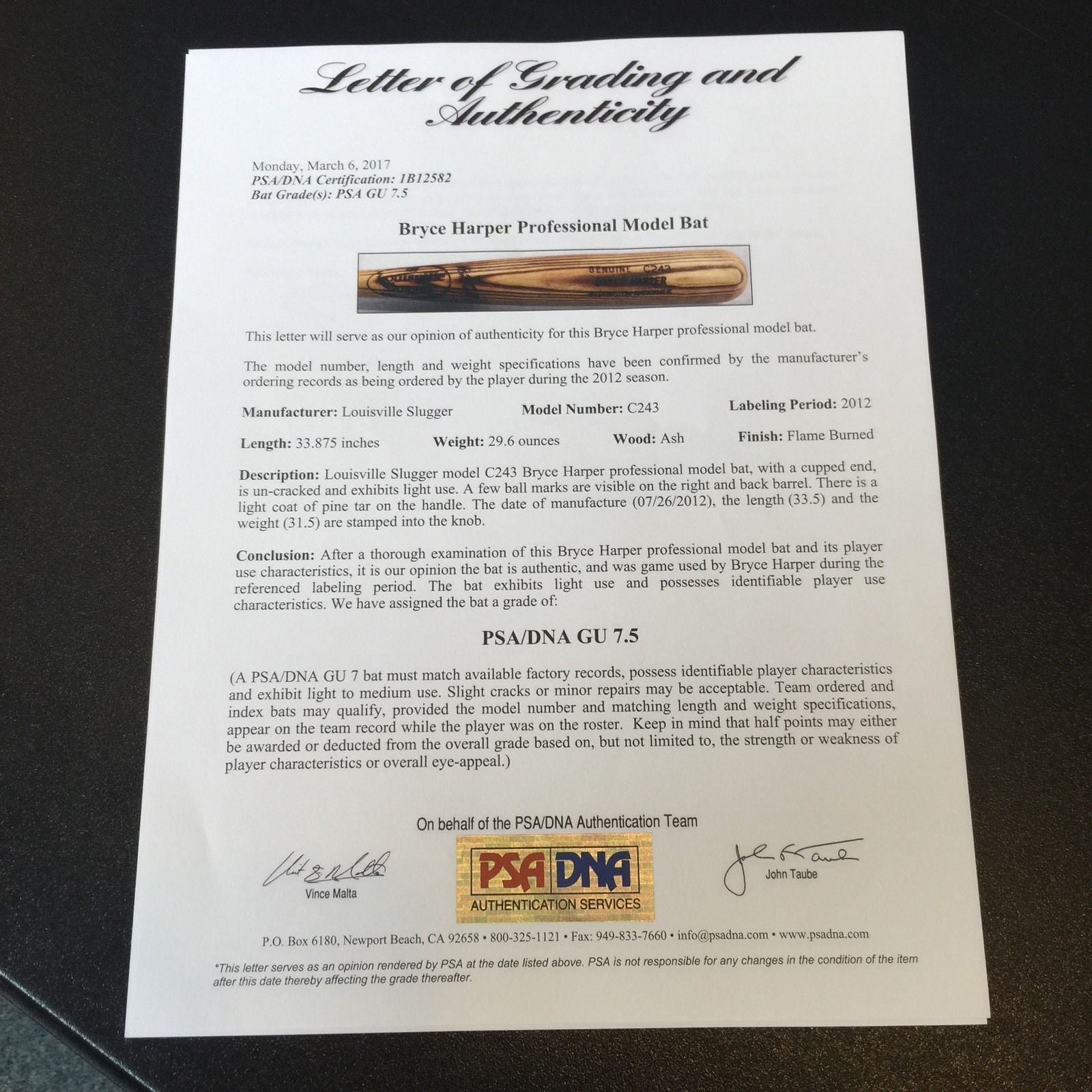 2012 Bryce Harper Game Used Louisville Slugger Rookie Season Bat PSA DNA COA