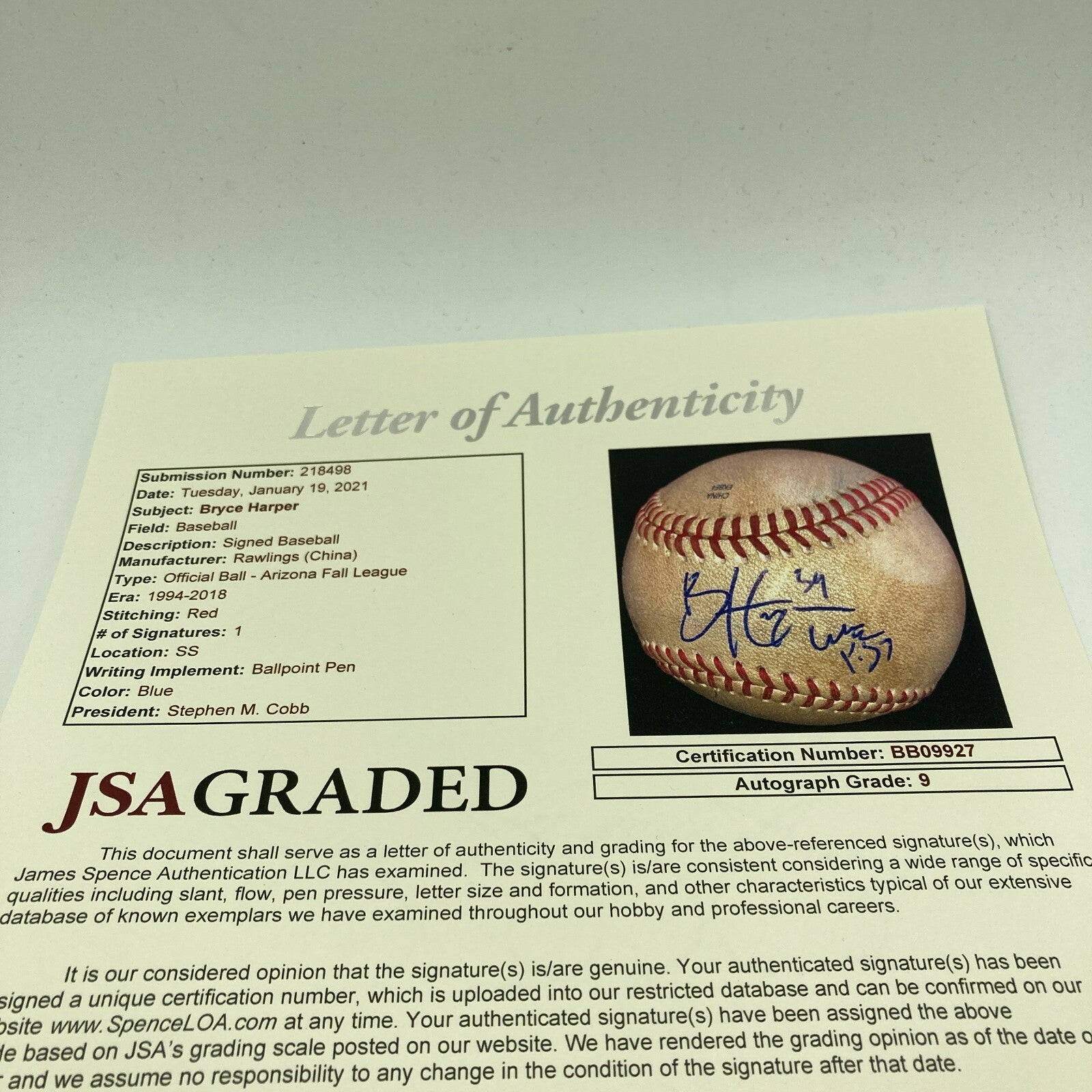 Bryce Harper MLB Debut 10-20-2010 Signed Game Used Baseball JSA Graded MINT 9