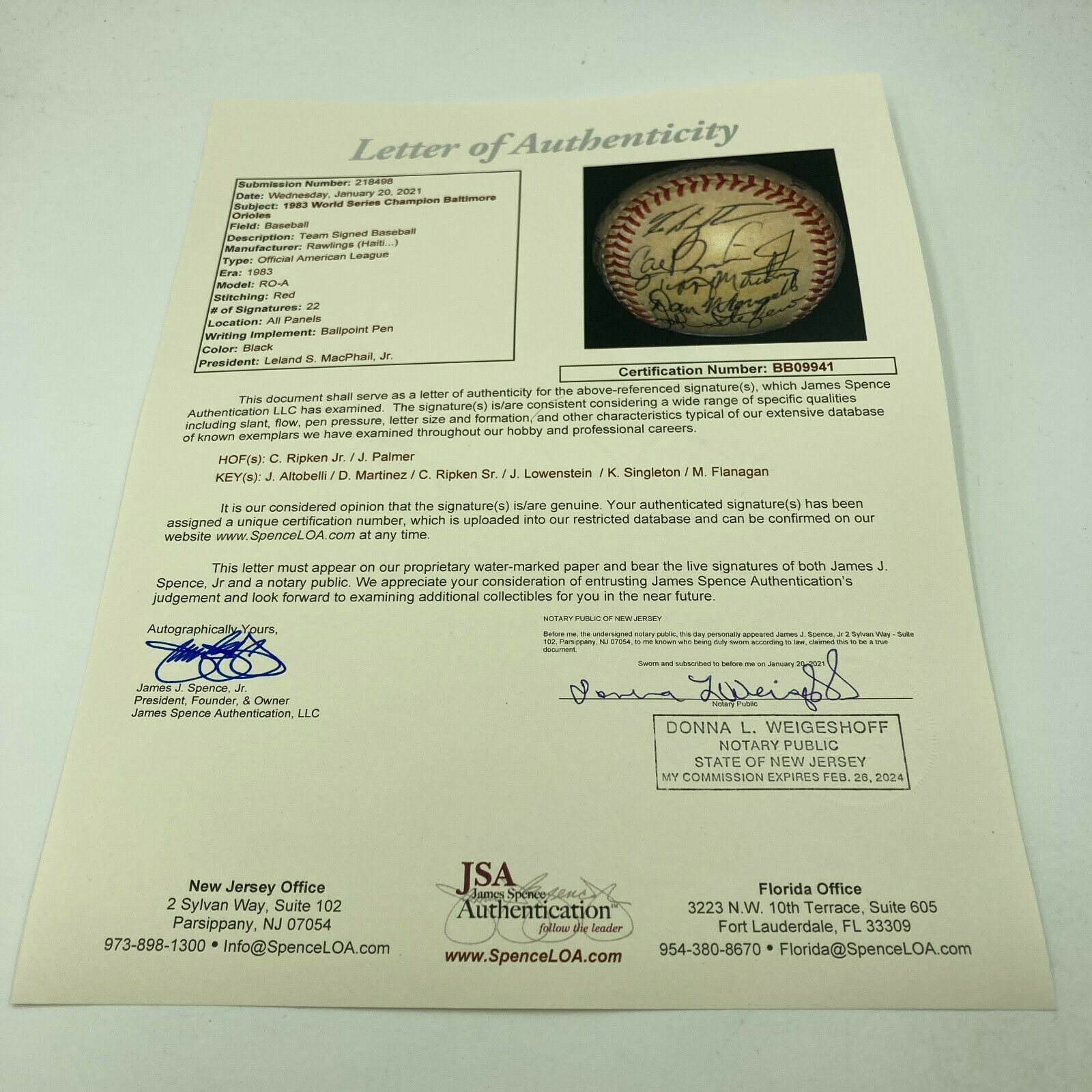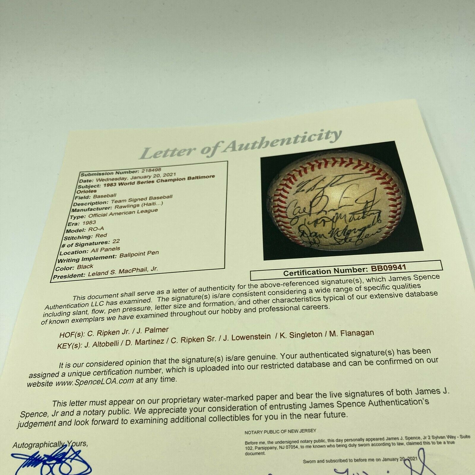 1983 Baltimore Orioles World Champions Team Signed Baseball Cal Ripken JSA