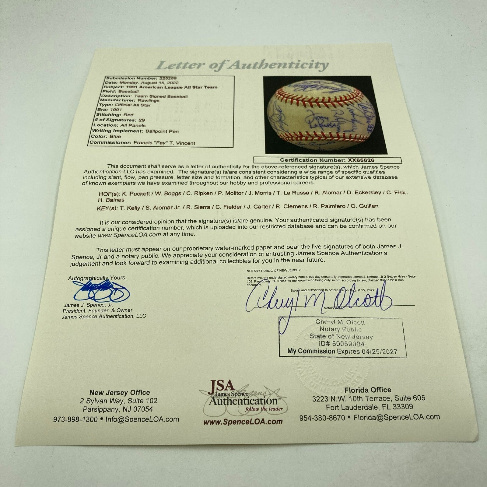 1991 All Star Game Team Signed Baseball Cal Ripken Jr. Kirby Puckett JSA COA