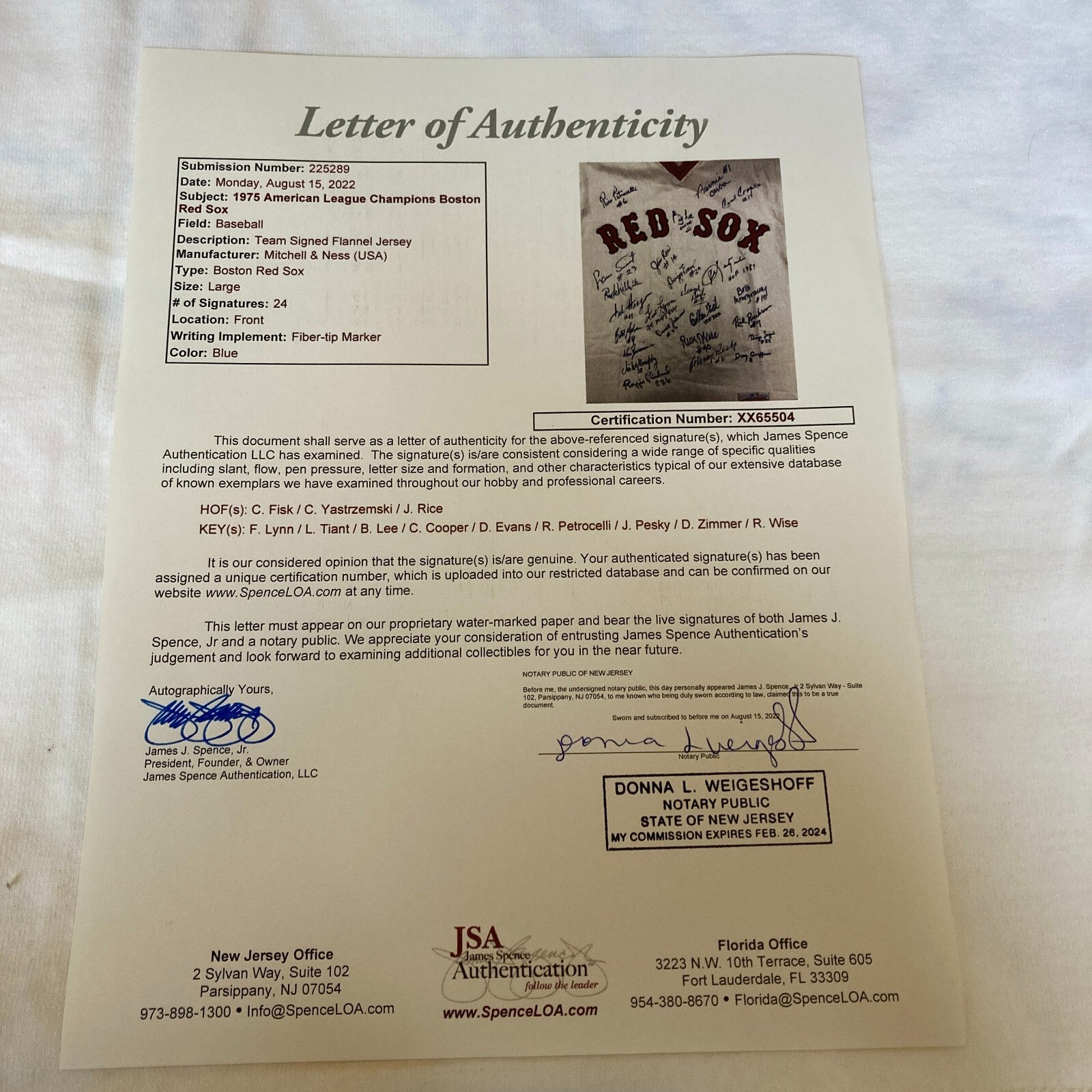 Stunning 1975 Boston Red Sox AL Champs Team Signed Authentic Mitchell & Ness Game Model Jersey. 24 signatures with Carl Yastrzemski, Carlton Fisk, Jim Rice and many others.