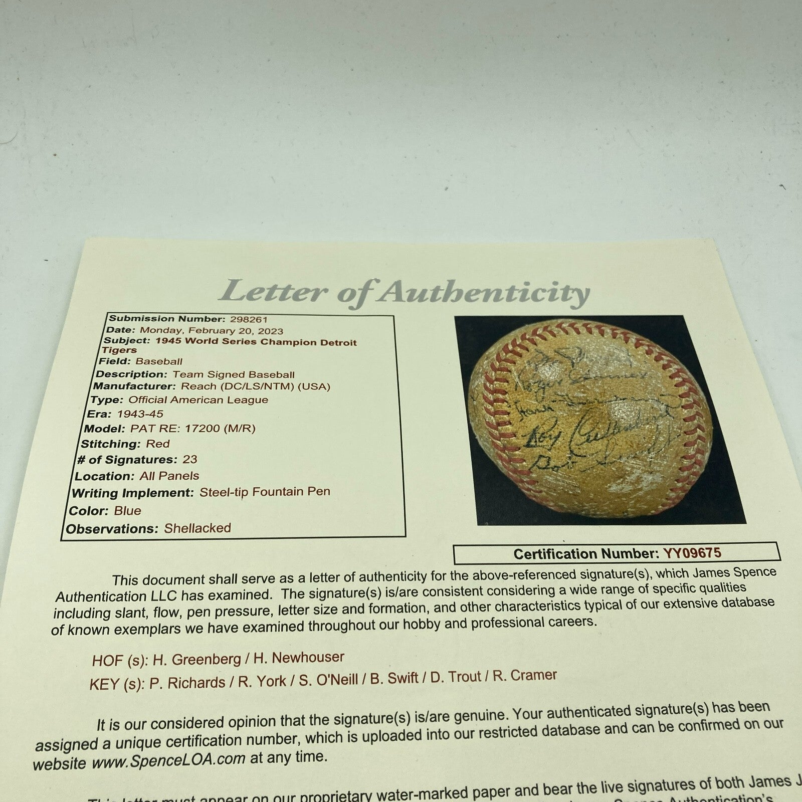 Click or scroll to zoom Tap or pinch to zoom Click or scroll to zoom Tap or pinch to zoom Click or scroll to zoom Tap or pinch to zoom Click or scroll to zoom Tap or pinch to zoom Click or scroll to zoom Tap or pinch to zoom Click or scroll to zoom Tap or pinch to zoom Click or scroll to zoom Tap or pinch to zoom Click or scroll to zoom Tap or pinch to zoom Click or scroll to zoom Tap or pinch to zoom Click or scroll to zoom Tap or pinch to zoom Click or scroll to zoom Tap or pinch to zoom 1945 Detroit Tigers World Series Champs Team Signed Baseball JSA COA Sold out 1 2 3 4 5 6 7 8 9 10+ Quantity Quantity Sold out Rare 1945 Detroit Tigers World Series Champs Team Signed Official American League Baseball. 23 signatures with Hank Greenberg and the rest of the team. Full letter JSA COA. D#85
