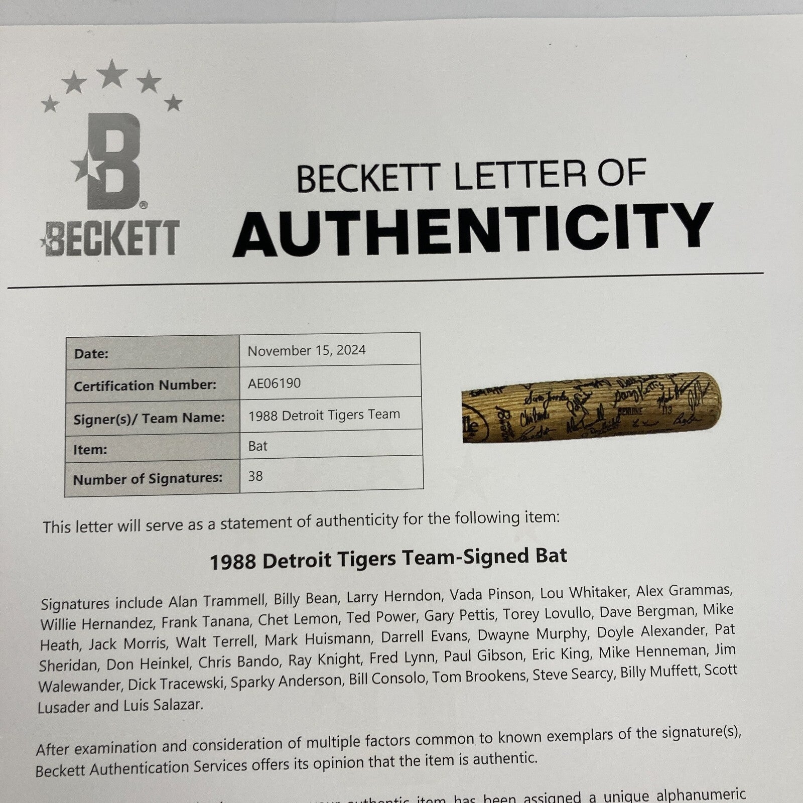 Click or scroll to zoom Tap or pinch to zoom Click or scroll to zoom Tap or pinch to zoom Click or scroll to zoom Tap or pinch to zoom Click or scroll to zoom Tap or pinch to zoom Click or scroll to zoom Tap or pinch to zoom Click or scroll to zoom Tap or pinch to zoom Click or scroll to zoom Tap or pinch to zoom Click or scroll to zoom Tap or pinch to zoom Click or scroll to zoom Tap or pinch to zoom Click or scroll to zoom Tap or pinch to zoom Click or scroll to zoom Tap or pinch to zoom Click or scroll to zoom Tap or pinch to zoom Click or scroll to zoom Tap or pinch to zoom Click or scroll to zoom Tap or pinch to zoom Click or scroll to zoom Tap or pinch to zoom Click or scroll to zoom Tap or pinch to zoom Click or scroll to zoom Tap or pinch to zoom Click or scroll to zoom Tap or pinch to zoom Click or scroll to zoom Tap or pinch to zoom Click or scroll to zoom Tap or pinch to zoom Click or scroll to zoom Tap or pinch to zoom 1988 Detroit Tigers Team-Signed Ray Knight Louisville Slugger Game Used Bat BAS Sold out 1 2 3 4 5 6 7 8 9 10+ Quantity Quantity Sold out 1988 Detroit Tigers Team-Signed Ray Knight Louisville Slugger Game Used Bat. 38 signatures. Comes with an LOA from Beckett for signatures. Bin #1