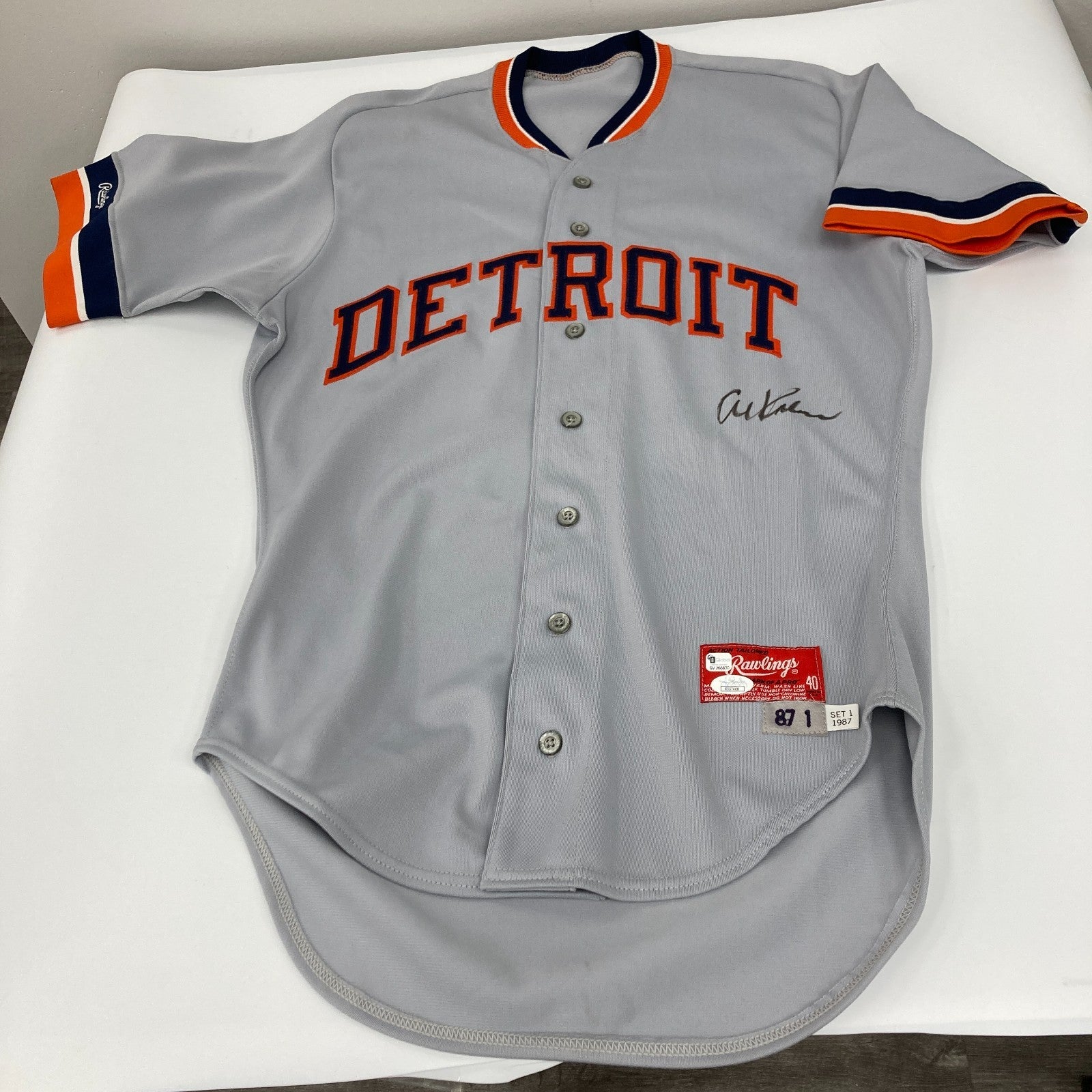 Al Kaline Signed Authentic Detroit Tigers Russell Jersey JSA COA. Jersey has some staining. See photos. Section #9