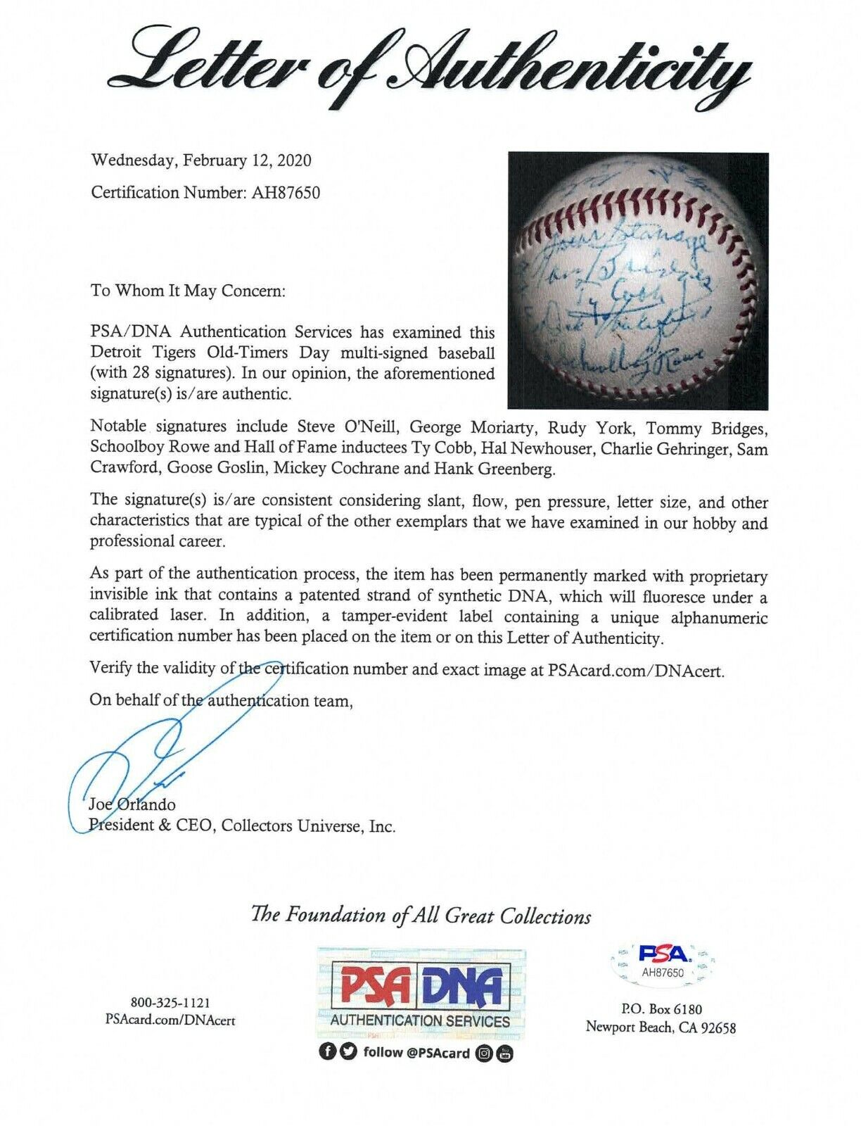 Magnificent Detroit Tigers Hall Of Fame Legends Signed Official American League (Harridge) Baseball