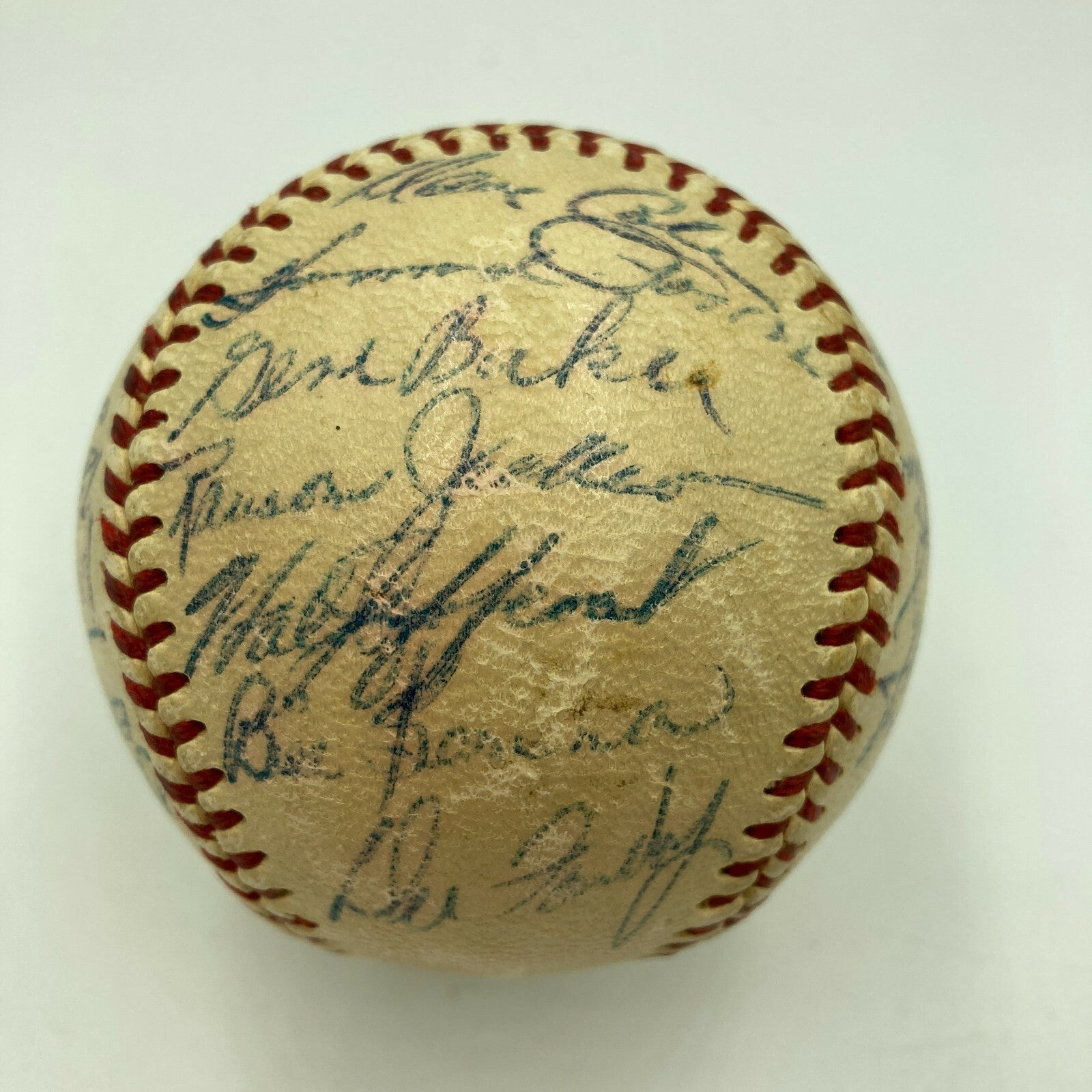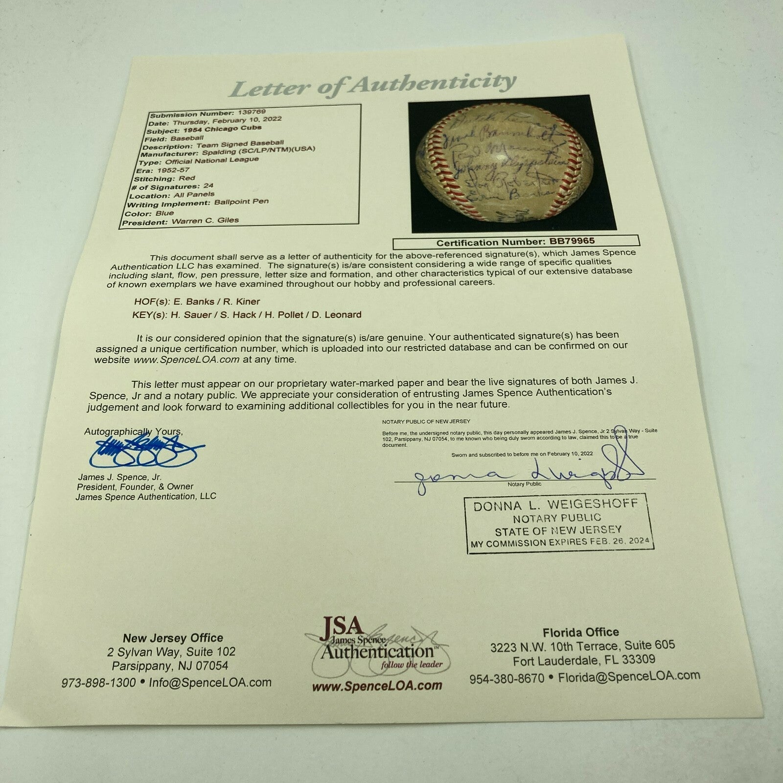 Rare 1954 Ernie Banks Rookie Chicago Cubs Team Signed National League Baseball. 24 signatures.