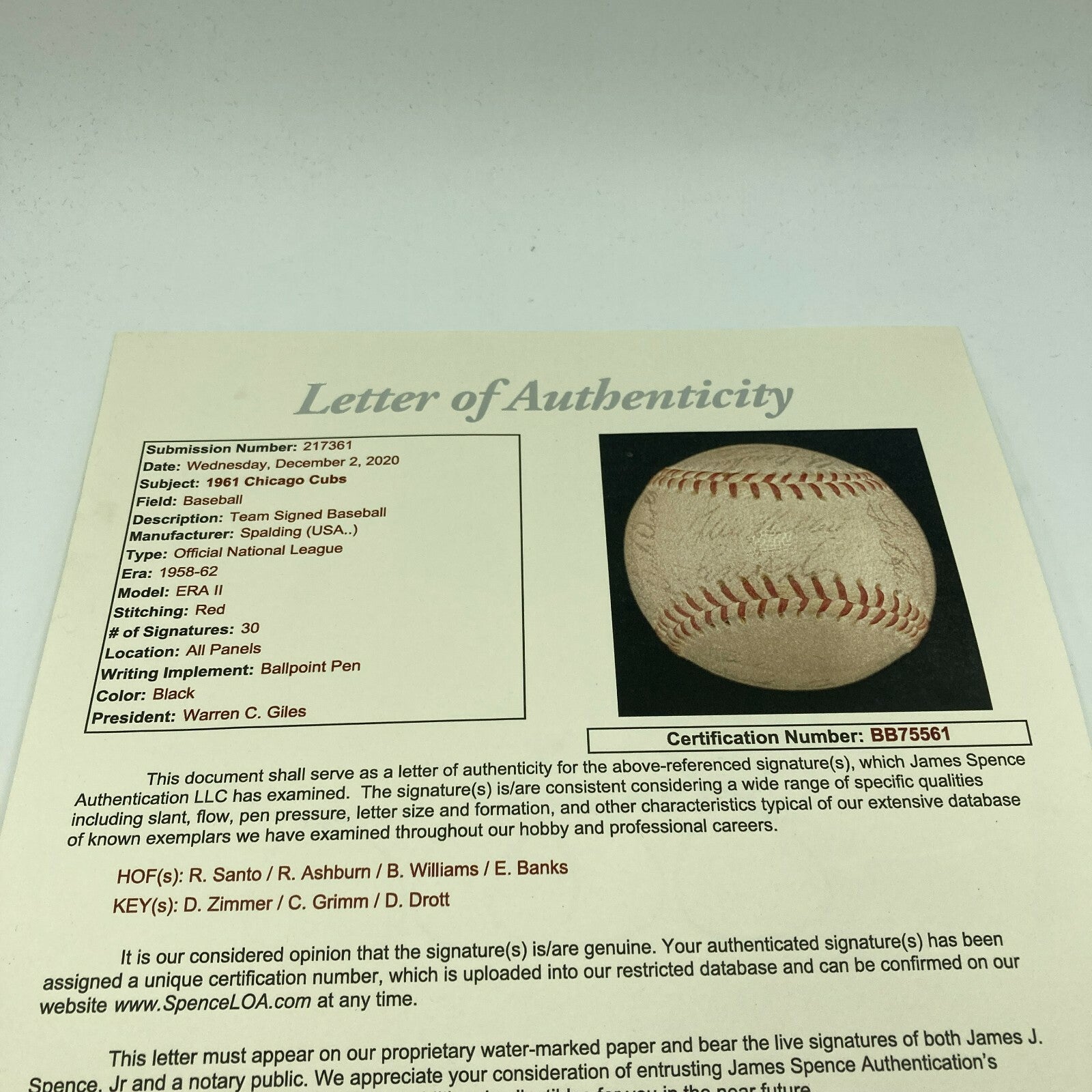 Click or scroll to zoom Tap or pinch to zoom Click or scroll to zoom Tap or pinch to zoom Click or scroll to zoom Tap or pinch to zoom Click or scroll to zoom Tap or pinch to zoom Click or scroll to zoom Tap or pinch to zoom Click or scroll to zoom Tap or pinch to zoom Click or scroll to zoom Tap or pinch to zoom Click or scroll to zoom Tap or pinch to zoom Click or scroll to zoom Tap or pinch to zoom 1961 Chicago Cubs Team Signed NL Baseball Ernie Banks Billy Williams JSA COA $499.00 1 2 3 4 5 6 7 8 9 10+ Quantity Quantity Add to cart This item is a recurring or deferred purchase. By continuing, I agree to the cancellation policy and authorize you to charge my payment method at the prices, frequency and dates listed on this page until my order is fulfilled or I cancel, if permitted. 1961 Chicago Cubs Team Signed Official National League Baseball. 30 signatures with Ernie Banks, Billy Williams, Ron Santo, Richie Ashburn and the rest of the team. Comes with full letter JSA COA. #92162534233 D#23
