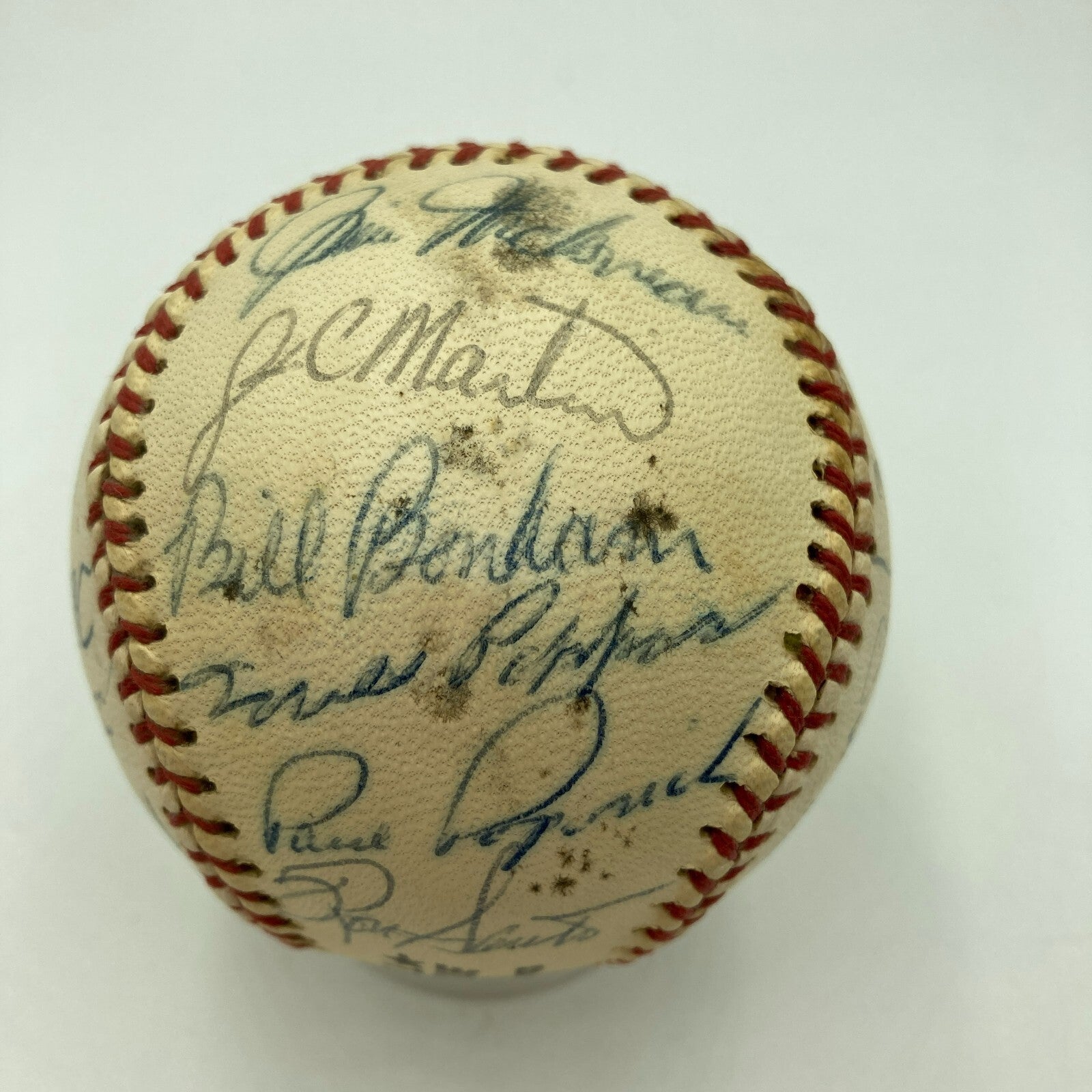 Offered is a Spalding Official National League Charles Feeney baseball signed by 24 members of the 1971 Chicago Cubs including Leo Durocher, Joe Pepitone, Jim Hickman, JC Martin, Milt Pappas, Ron Santon, Ernie Banks, Ken Holtzman, Fergie Jenkins, Randy Hundley, Don Kessinger, Glenn Beckert, Cleo James, Billy Williams, Bill Hands and more. Full JSA letter XX27486 will also attend.