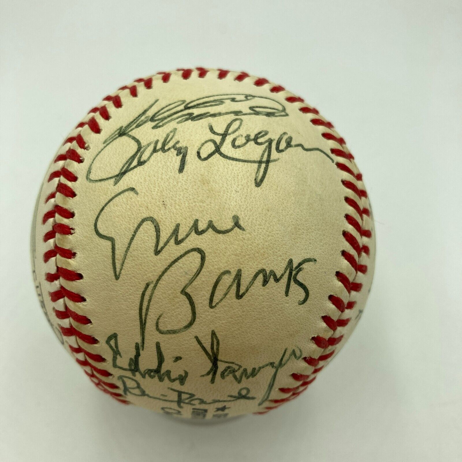 Ernie Banks, Ron Santo, Juan Marichal, Billy Williams, Ralph Kiner, Lou Brock, Warren Spahn, Hank Aaron, Ted Kluszewski, Richie Ashburn, Willie Jones and many others. Guaranteed to pass PSA DNA or JSA.