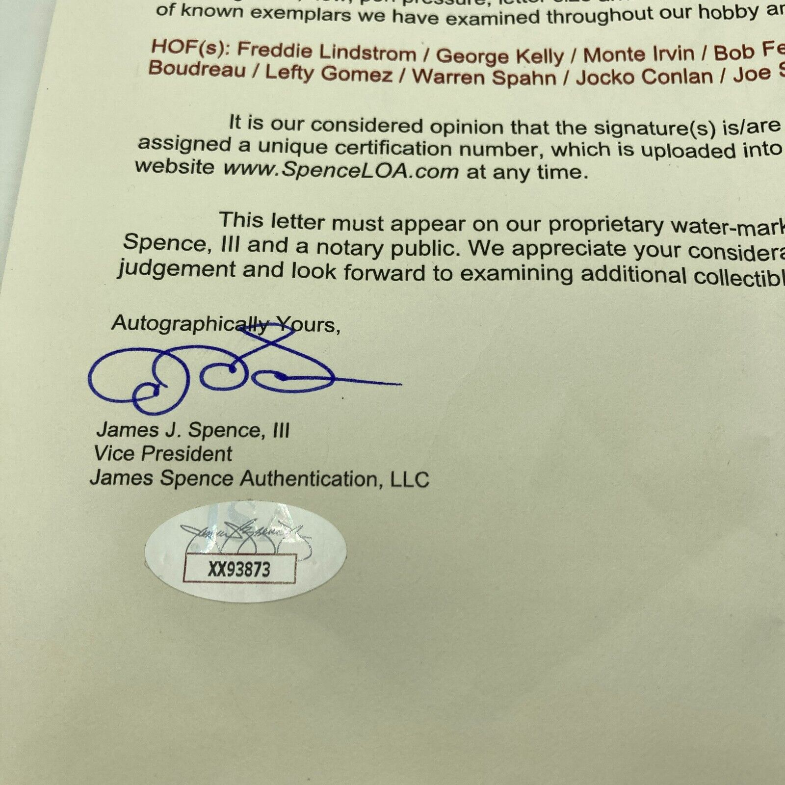 Freddie Lindstrom, Ernie Banks, Lloyd Waner, George Kelly, Lefty Gomez, Earl Averill, Warren Spahn and many others. Full letter JSA COA.