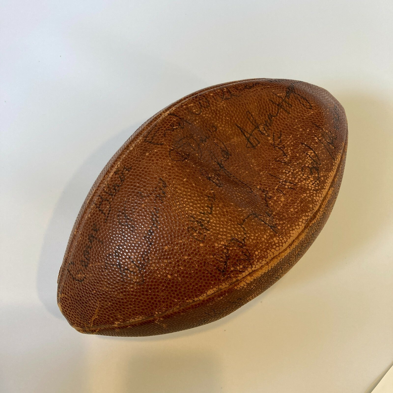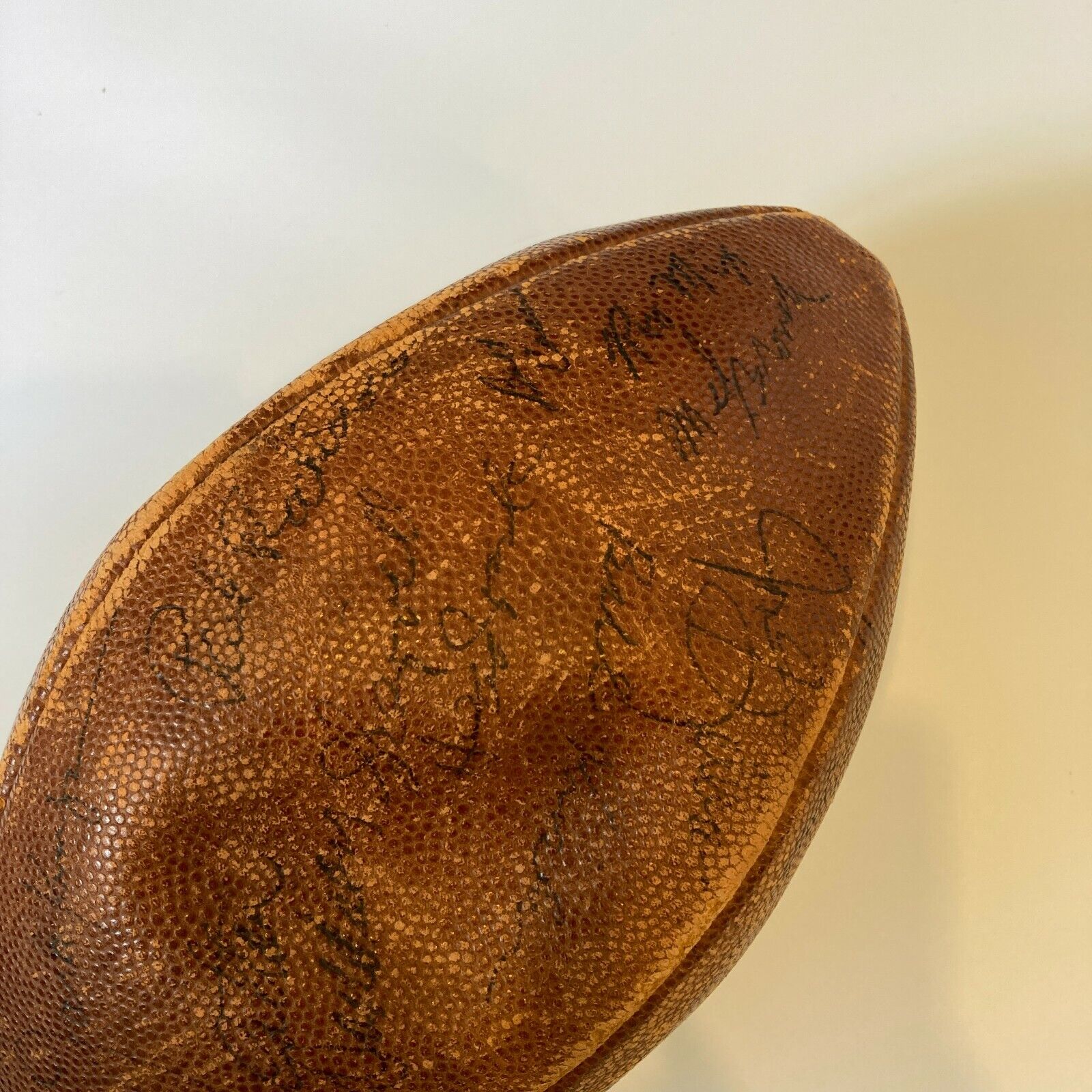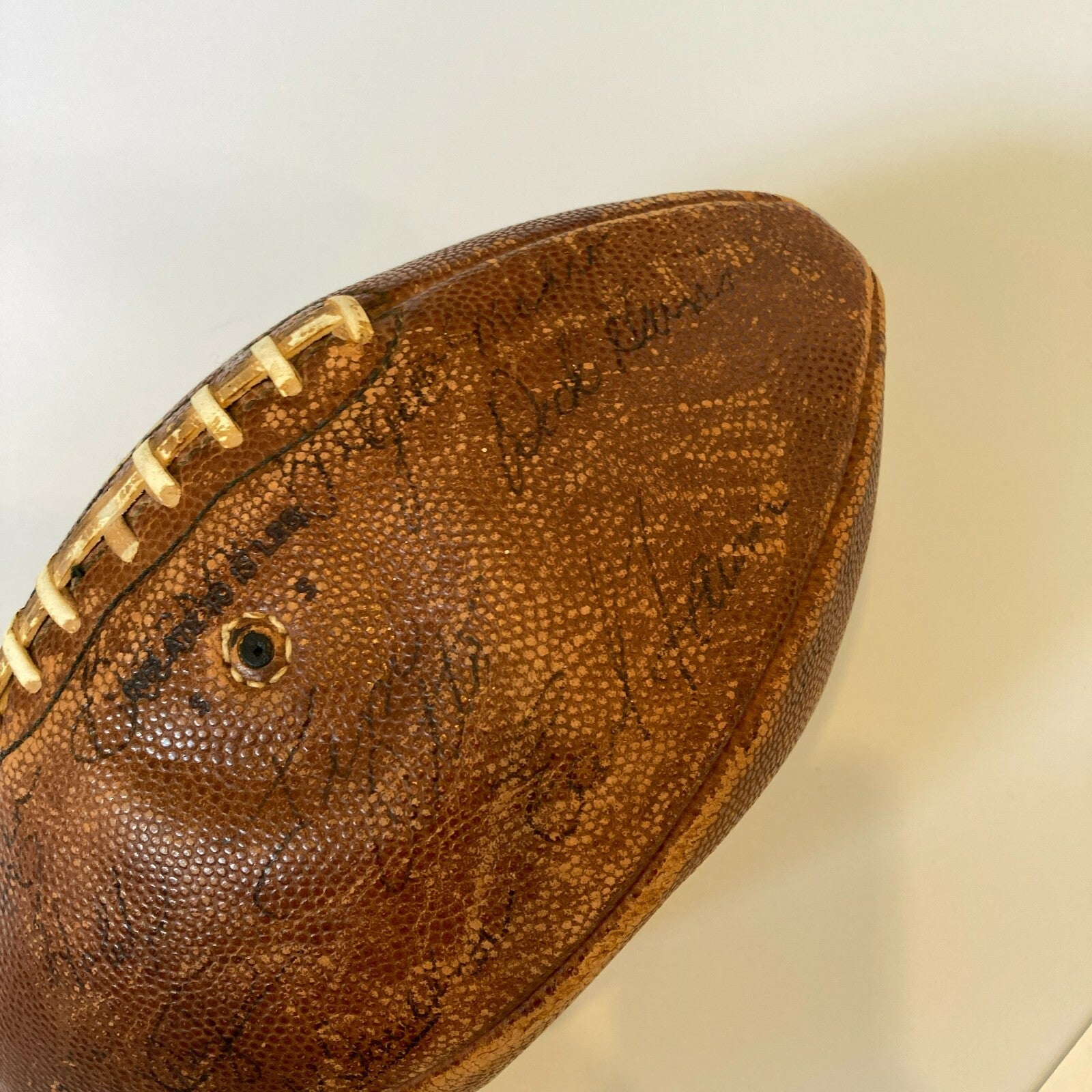 Rare early 1960s AFL team signed game used football. 32 signatures in all. The highlights include a rare early Al Davis, a super early Chuck Noll, Jack Kemp, Ron Mix, Jim Otto and Sid Gillman, for a total of six HOFers. The other signatures include Branch, Gilliam, Haynes and Williamson. The ball is not inflated but presents nicely.