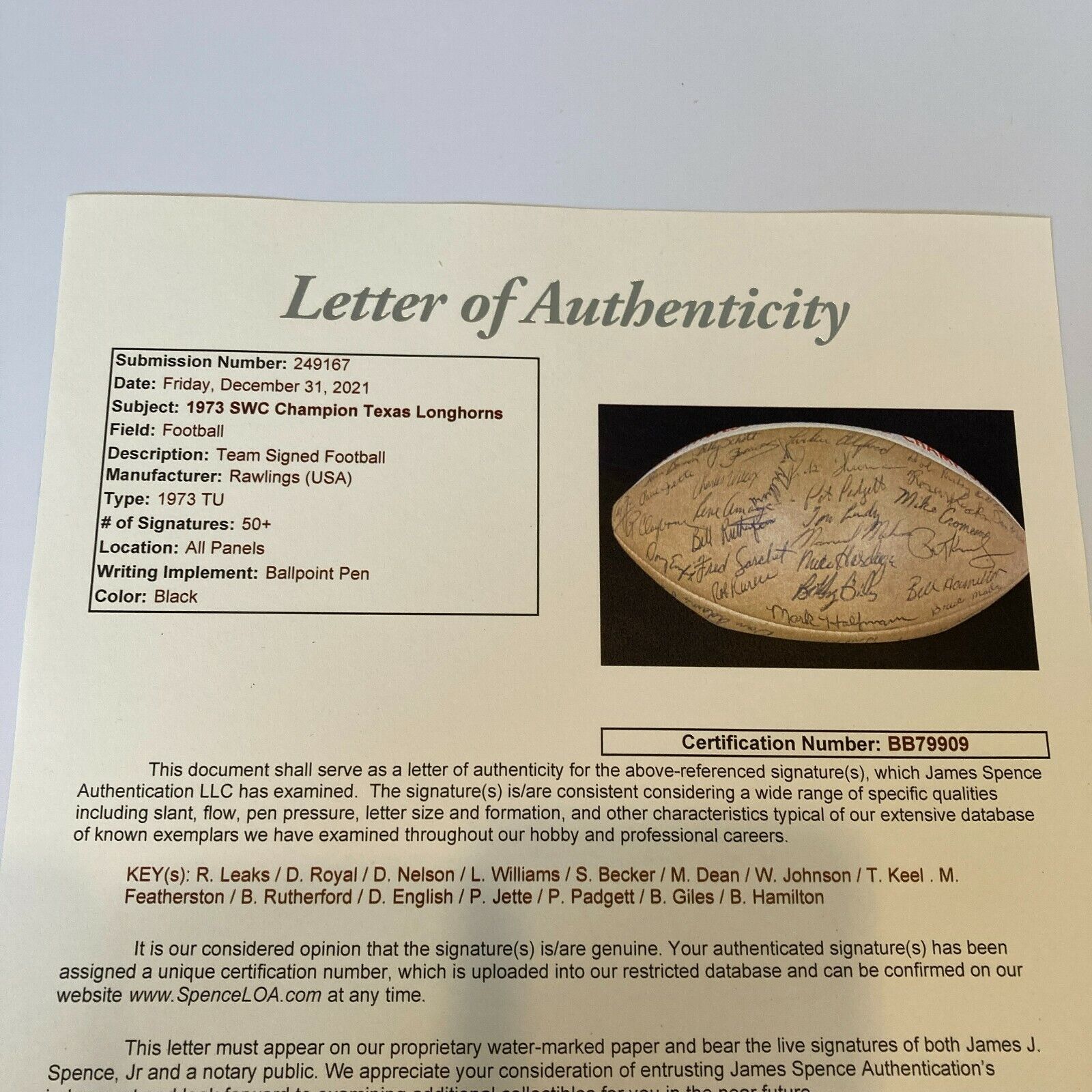 Rare 1973 Texas Longhorns SWC Champions Team Signed Football With 50+ Sigs.