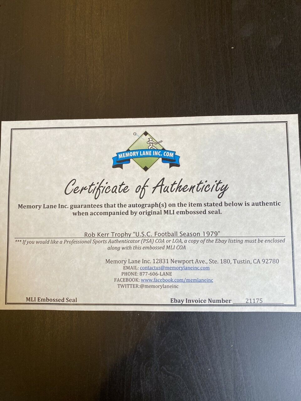 Add this incredible items to your USC Trojan shrine! Comes with COA from Memory Lane.