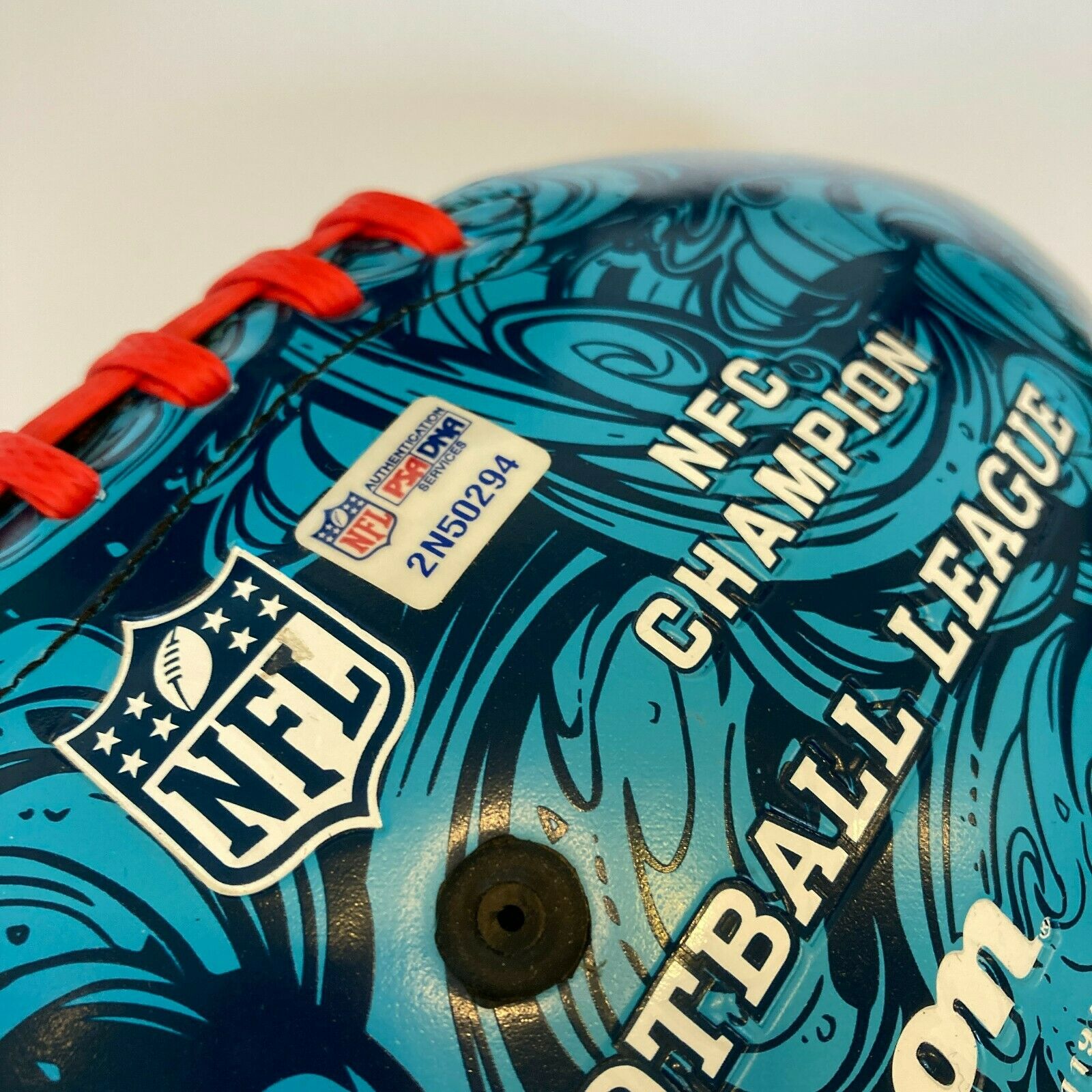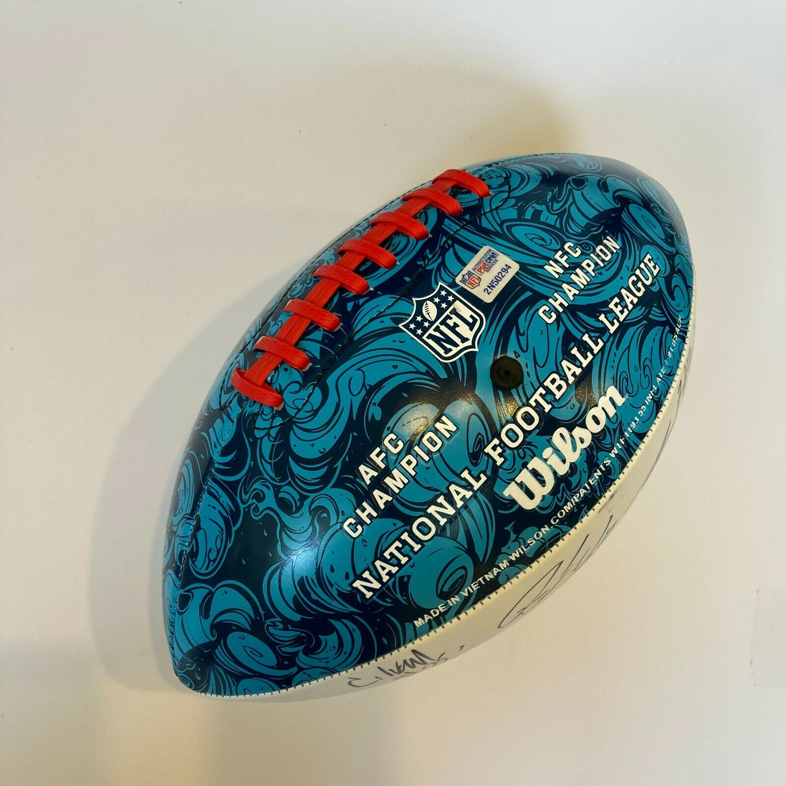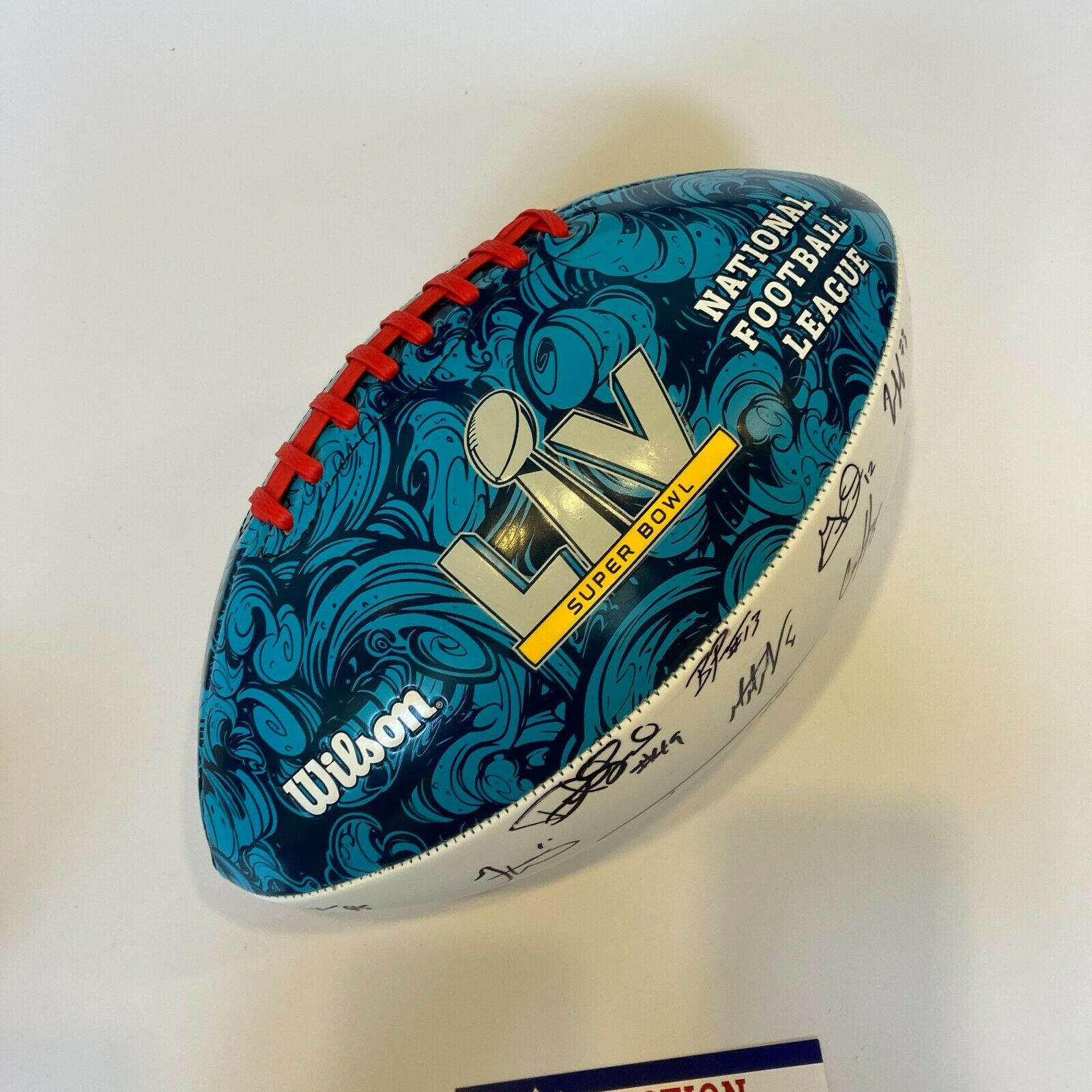 Wilson "Super Bowl LV" logo commemorative football has been signed by approx. (35) incl. Patrick Mahomes, Tyreek Hill, Clyde Edwards-Helaire, Andy Reid, and others. Includes COA from PSA/DNA (2N50294)