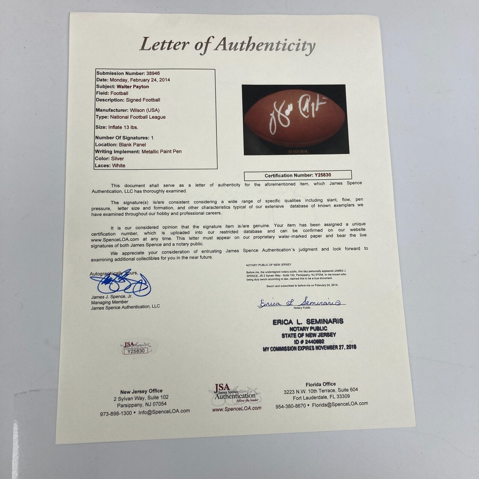 Click or scroll to zoom Tap or pinch to zoom Click or scroll to zoom Tap or pinch to zoom Click or scroll to zoom Tap or pinch to zoom Click or scroll to zoom Tap or pinch to zoom Click or scroll to zoom Tap or pinch to zoom Beautiful Walter Payton Signed Wilson NFL Game Football With JSA COA Sold out 1 2 3 4 5 6 7 8 9 10+ Quantity Quantity Sold out Beautiful Walter Payton Signed Wilson NFL Game Football. Full letter JSA COA. The ball is fully inflated and holds air. Bag #7 Listed with ExportYourStore.com