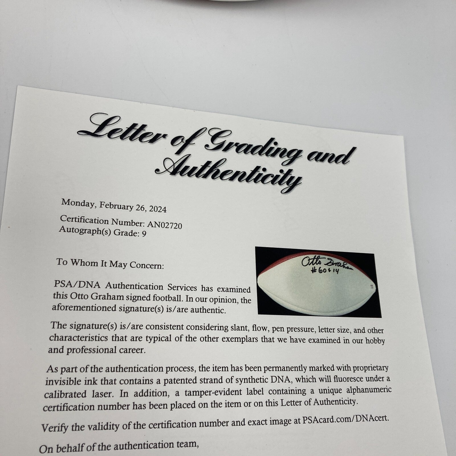Click or scroll to zoom Tap or pinch to zoom Click or scroll to zoom Tap or pinch to zoom Click or scroll to zoom Tap or pinch to zoom Click or scroll to zoom Tap or pinch to zoom Click or scroll to zoom Tap or pinch to zoom Click or scroll to zoom Tap or pinch to zoom Click or scroll to zoom Tap or pinch to zoom Otto Graham Signed Authentic Wilson NFL Football PSA DNA Graded 9 MINT $599.00 1 2 3 4 5 6 7 8 9 10+ Quantity Quantity Add to cart This item is a recurring or deferred purchase. By continuing, I agree to the cancellation policy and authorize you to charge my payment method at the prices, frequency and dates listed on this page until my order is fulfilled or I cancel, if permitted. Otto Graham Signed Authentic Wilson NFL Football PSA DNA Graded 9 MINT. The football does not fully inflate. Bag #18
