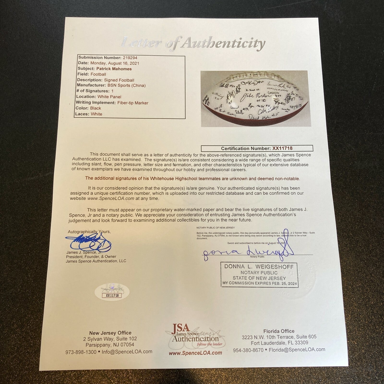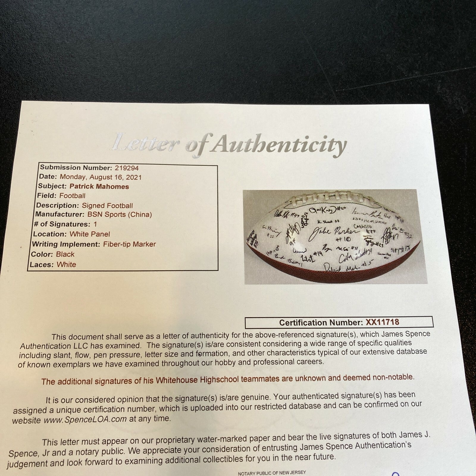 Click or scroll to zoom Tap or pinch to zoom Click or scroll to zoom Tap or pinch to zoom Click or scroll to zoom Tap or pinch to zoom Click or scroll to zoom Tap or pinch to zoom Click or scroll to zoom Tap or pinch to zoom Click or scroll to zoom Tap or pinch to zoom Click or scroll to zoom Tap or pinch to zoom Click or scroll to zoom Tap or pinch to zoom Patrick Mahomes 2013 Whitehouse Wildcats High School Team Signed Football JSA $10,995.00 1 2 3 4 5 6 7 8 9 10+ Quantity Quantity Add to cart This item is a recurring or deferred purchase. By continuing, I agree to the cancellation policy and authorize you to charge my payment method at the prices, frequency and dates listed on this page until my order is fulfilled or I cancel, if permitted. Earliest know Patrick Mahomes autograph! 2013 White House Wildcats team signed football. Comes with full letter Certificate Of Authenticity from JSA . Bag #15