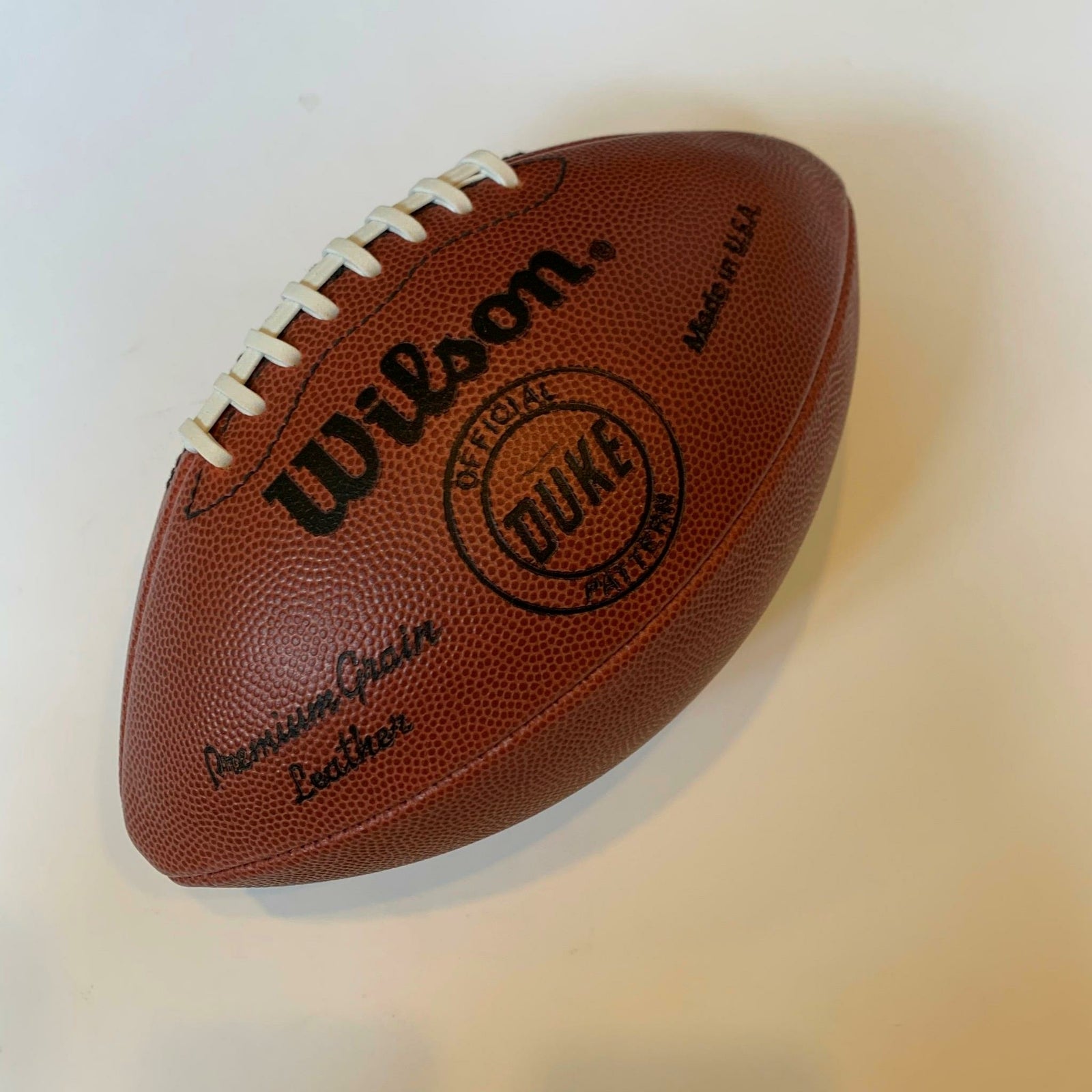 Rare Red Grange Signed Autographed Authentic Wilson The Duke NFL Football With JSA COA. Grange inscribed it 6-14-1989. The football is fully inflated and hold air.
