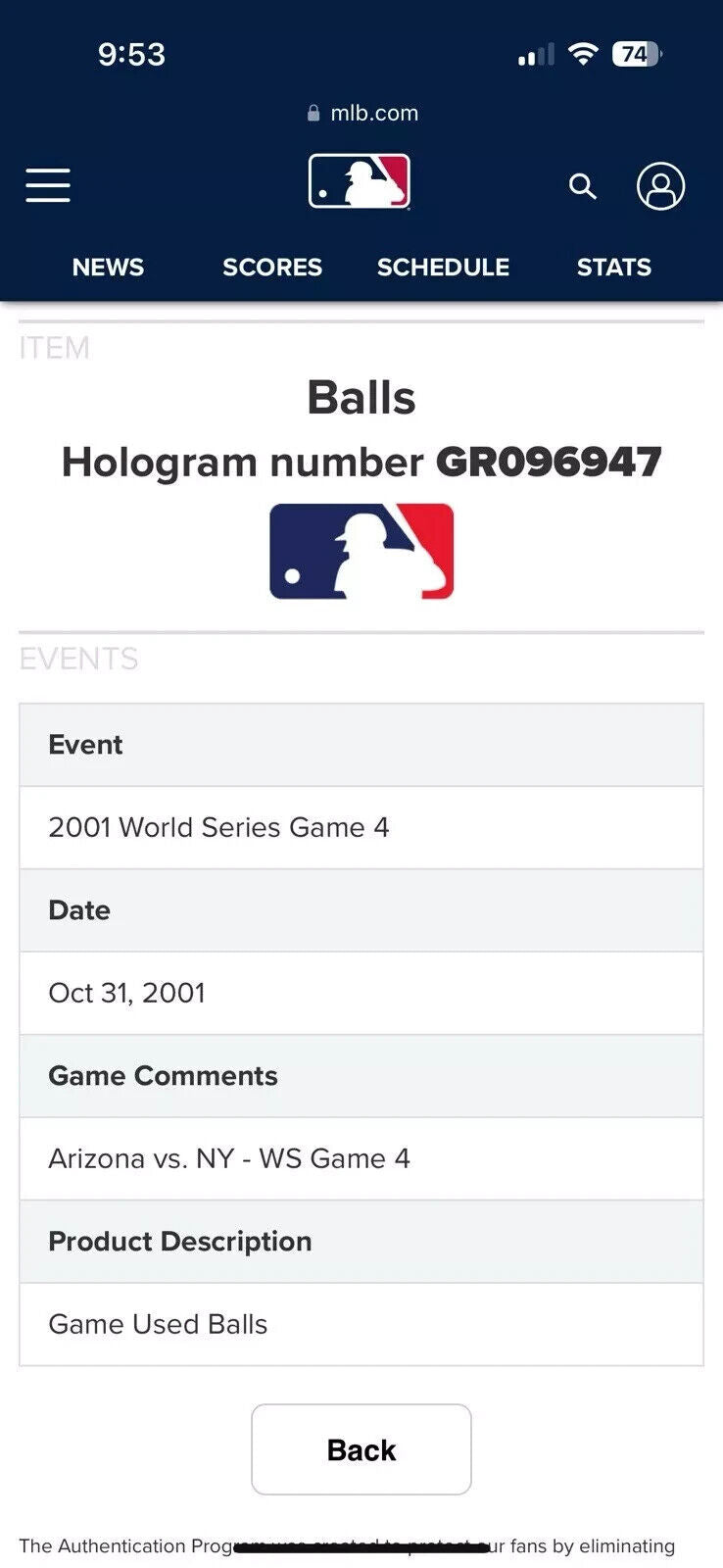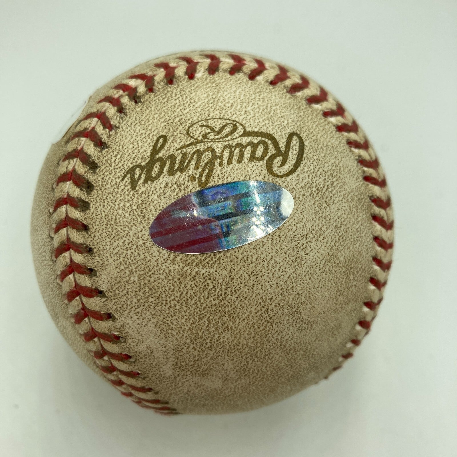 Very rare 2001 World Series Game 4 game used baseball signed by Yankees Legend Derek Jeter. This ball was used in the historic "Mr. November" game when Jeter hit a walkoff home run right after midnight on November 1, 2001. The ball is authenticated by Major League Baseball.