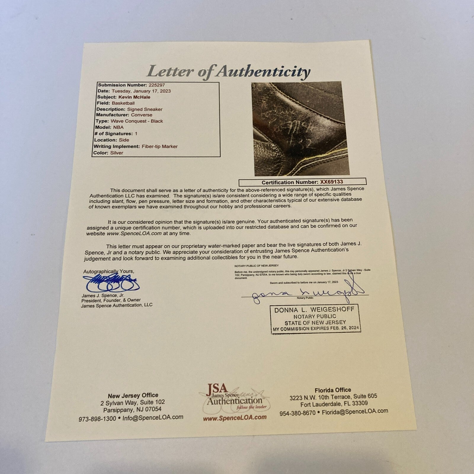 Kevin Mchale Signed 1980's Game Used Shoe Sneaker JSA COA Boston Celtics