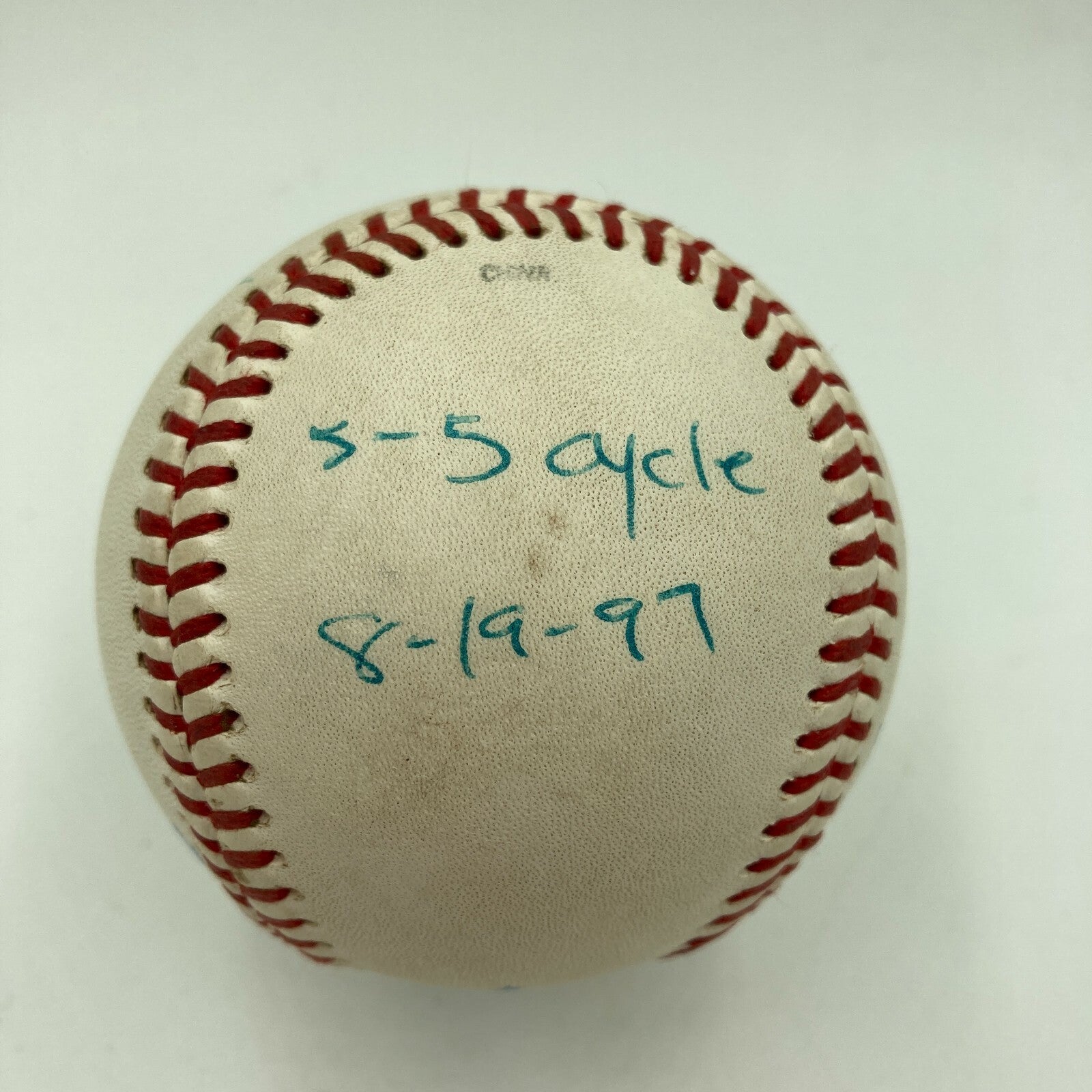 Presented is a game-used Official Major League Allen H. Selig baseball that has been signed on the sweet spot in blue ink by former Phillies pitch...