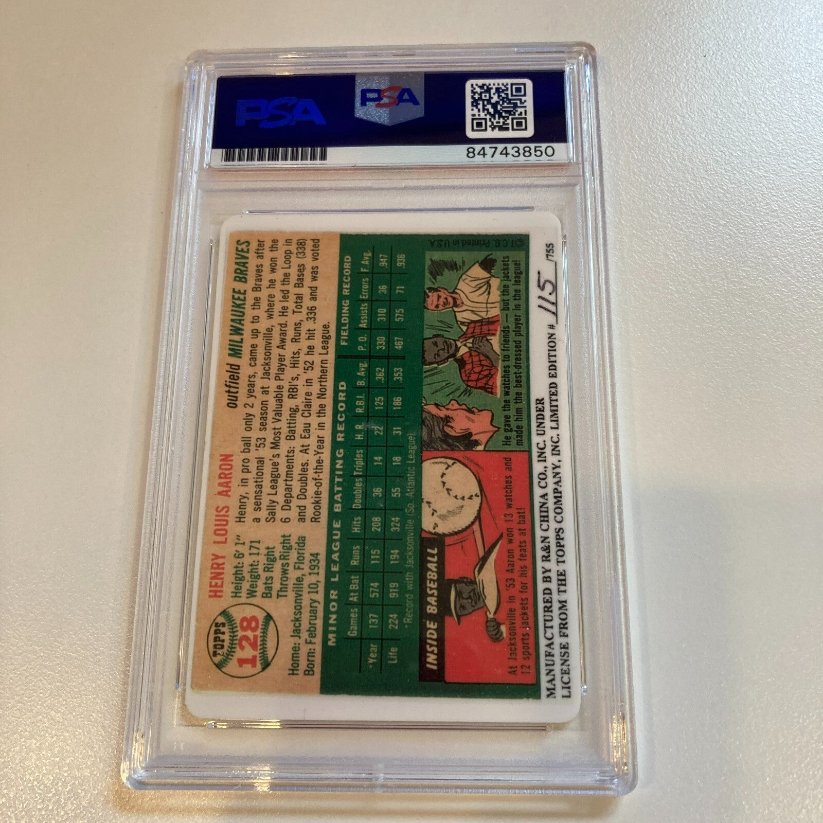 1954 Topps Hank Aaron RC Signed Porcelain Baseball Card PSA DNA HOF 1982