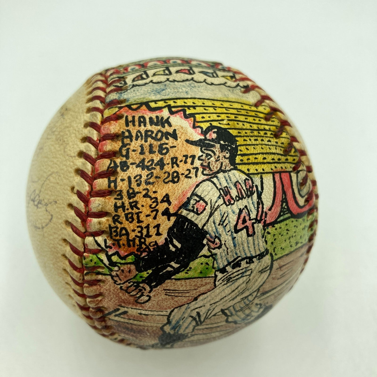 Beautiful Hank Aaron Signed Hand Painted George Sosnak Folk Art Baseball.