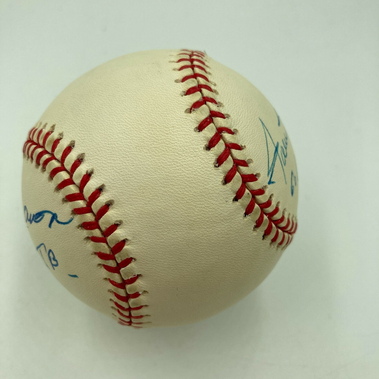 $349.00 Hank Aaron Eddie Mathews Signed Vintage 1973 American League Cronin Baseball JSA Presented is an Official American League (Cronin) baseball signed by former Milwaukee Braves Hall of Famers and stars. Hank Aaron, Eddie Mathews, ... View full details