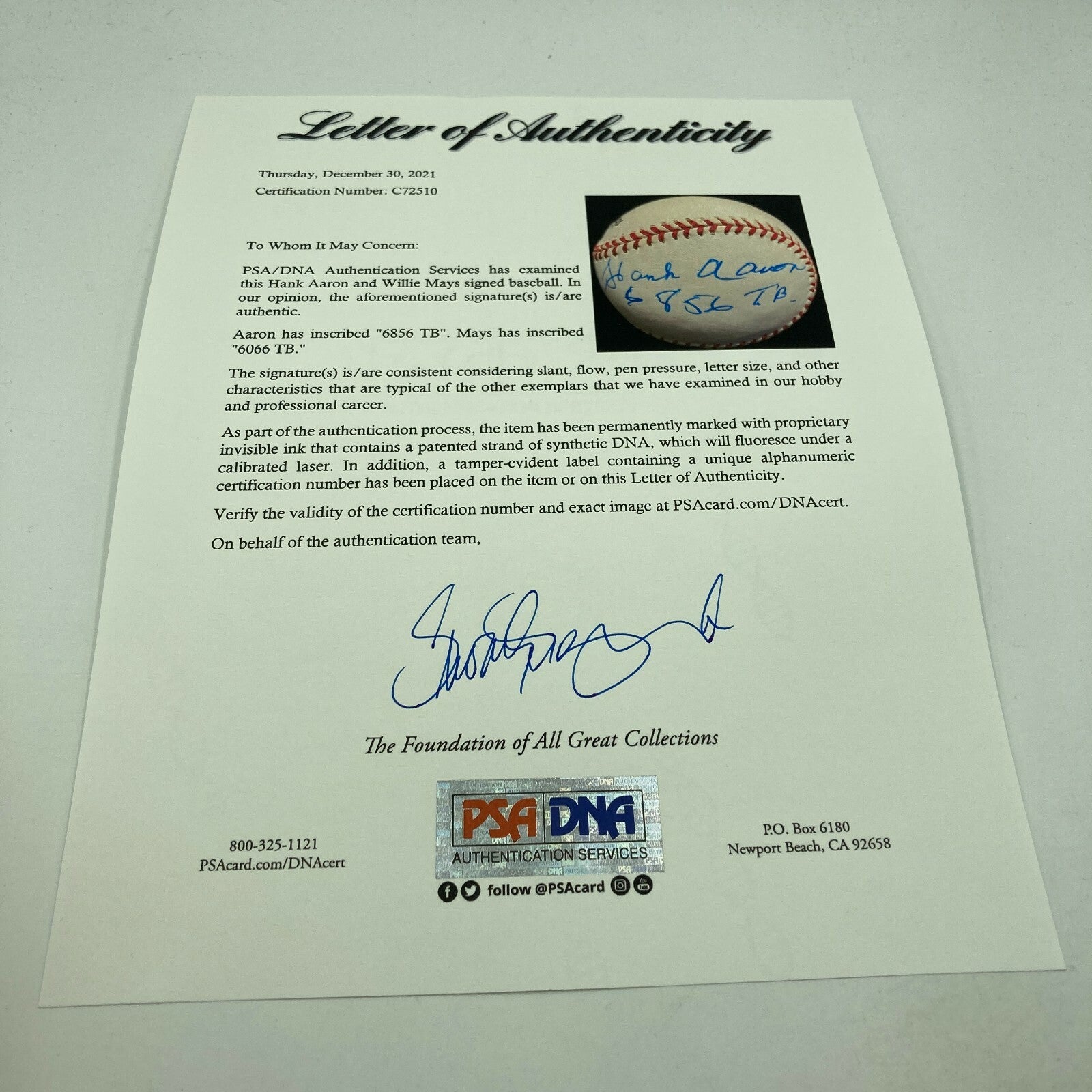 Click or scroll to zoom Tap or pinch to zoom Click or scroll to zoom Tap or pinch to zoom Click or scroll to zoom Tap or pinch to zoom Click or scroll to zoom Tap or pinch to zoom Click or scroll to zoom Tap or pinch to zoom Click or scroll to zoom Tap or pinch to zoom Click or scroll to zoom Tap or pinch to zoom Beautiful Willie Mays & Hank Aaron Total Baseball Signed Baseball PSA DNA COA $1,495.00 1 2 3 4 5 6 7 8 9 10+ Quantity Quantity Add to cart This item is a recurring or deferred purchase. By continuing, I agree to the cancellation policy and authorize you to charge my payment method at the prices, frequency and dates listed on this page until my order is fulfilled or I cancel, if permitted. Beautiful Willie Mays & Hank Aaron Total Baseball Signed Inscribed National League Baseball PSA DNA COA #952887736524 D#16