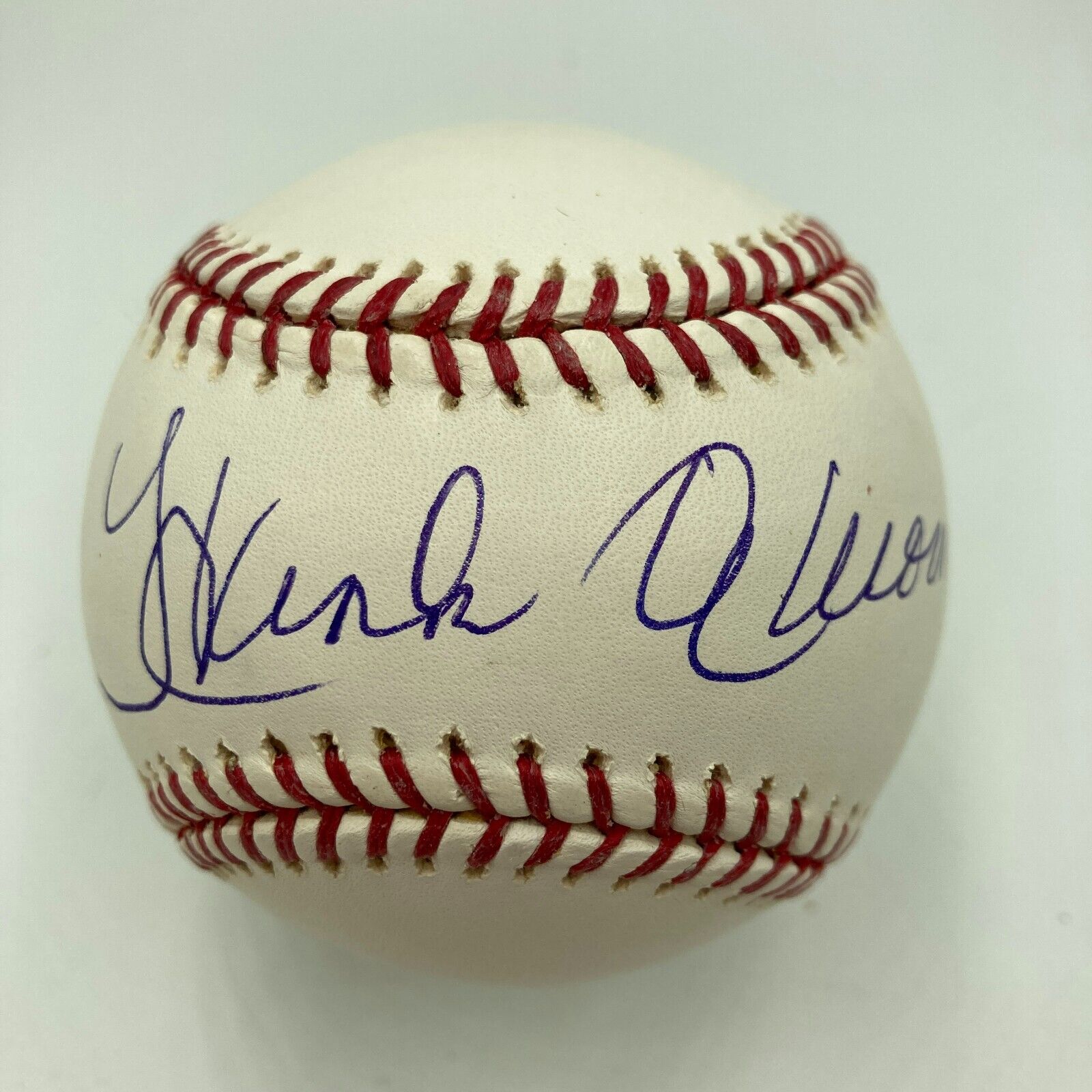 $349.00 Hank Aaron Eddie Mathews Signed Vintage 1973 American League Cronin Baseball JSA Presented is an Official American League (Cronin) baseball signed by former Milwaukee Braves Hall of Famers and stars. Hank Aaron, Eddie Mathews, ... View full details