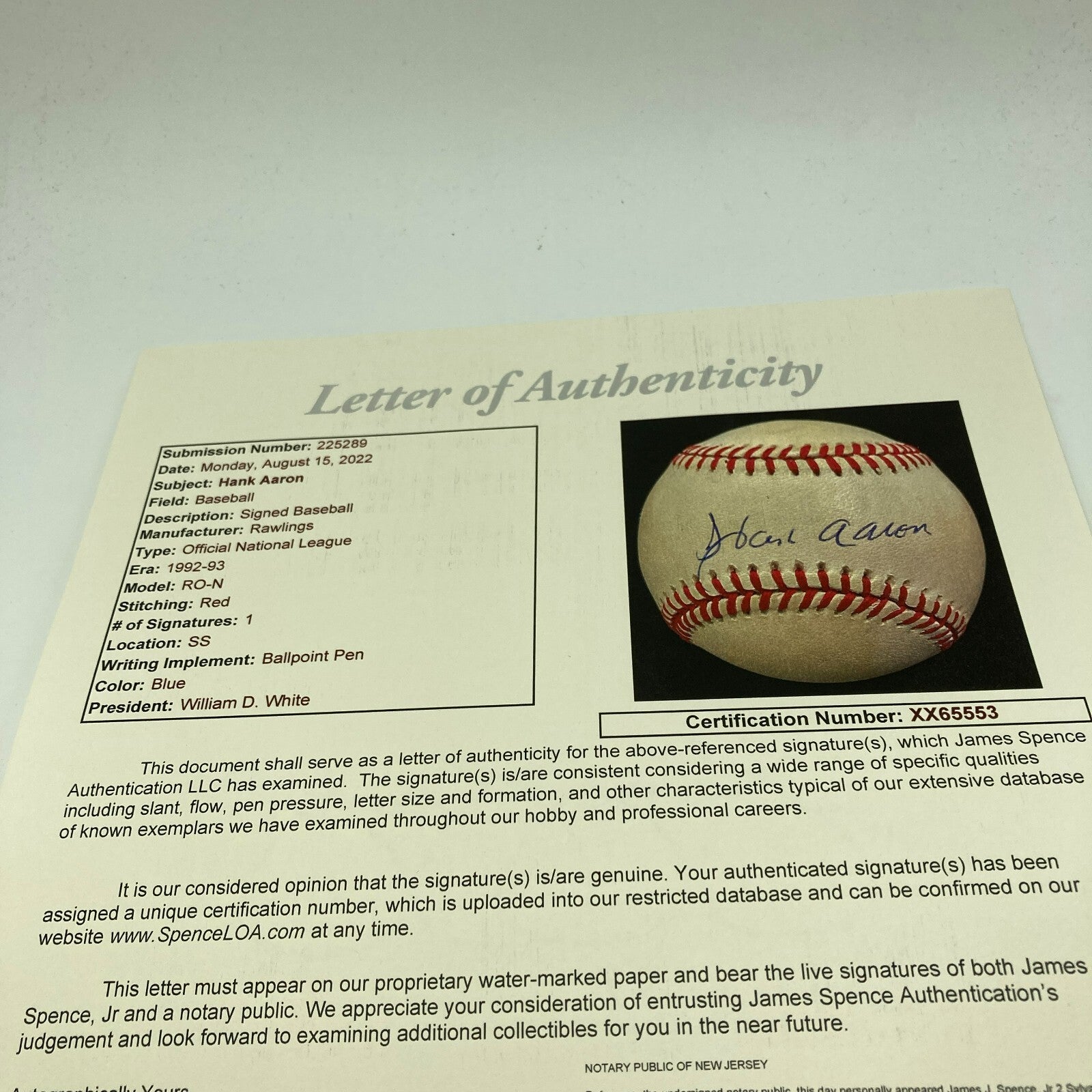 Nice Hank Aaron Signed Official National League Baseball JSA COA
