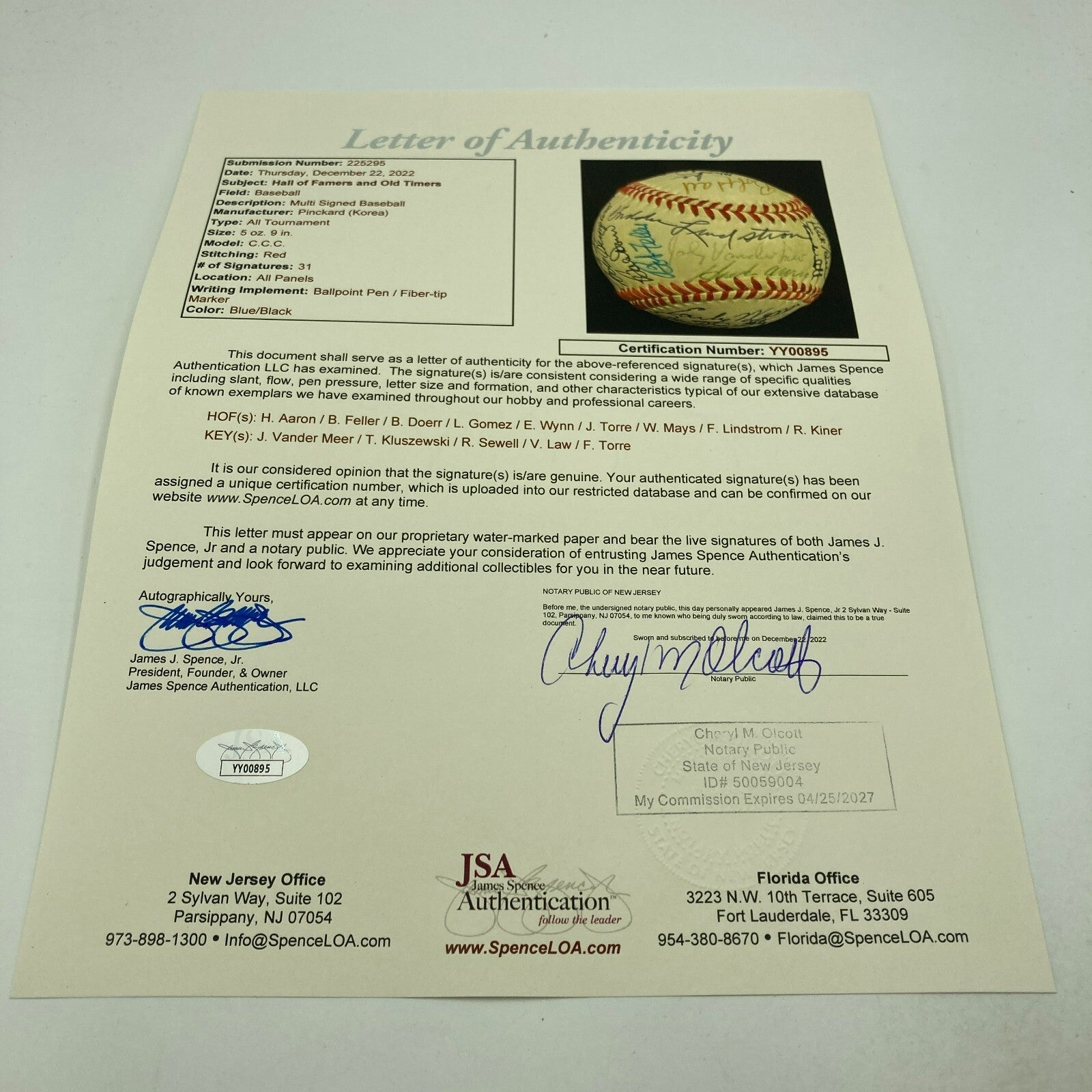 Comes with full letter JSA COA.