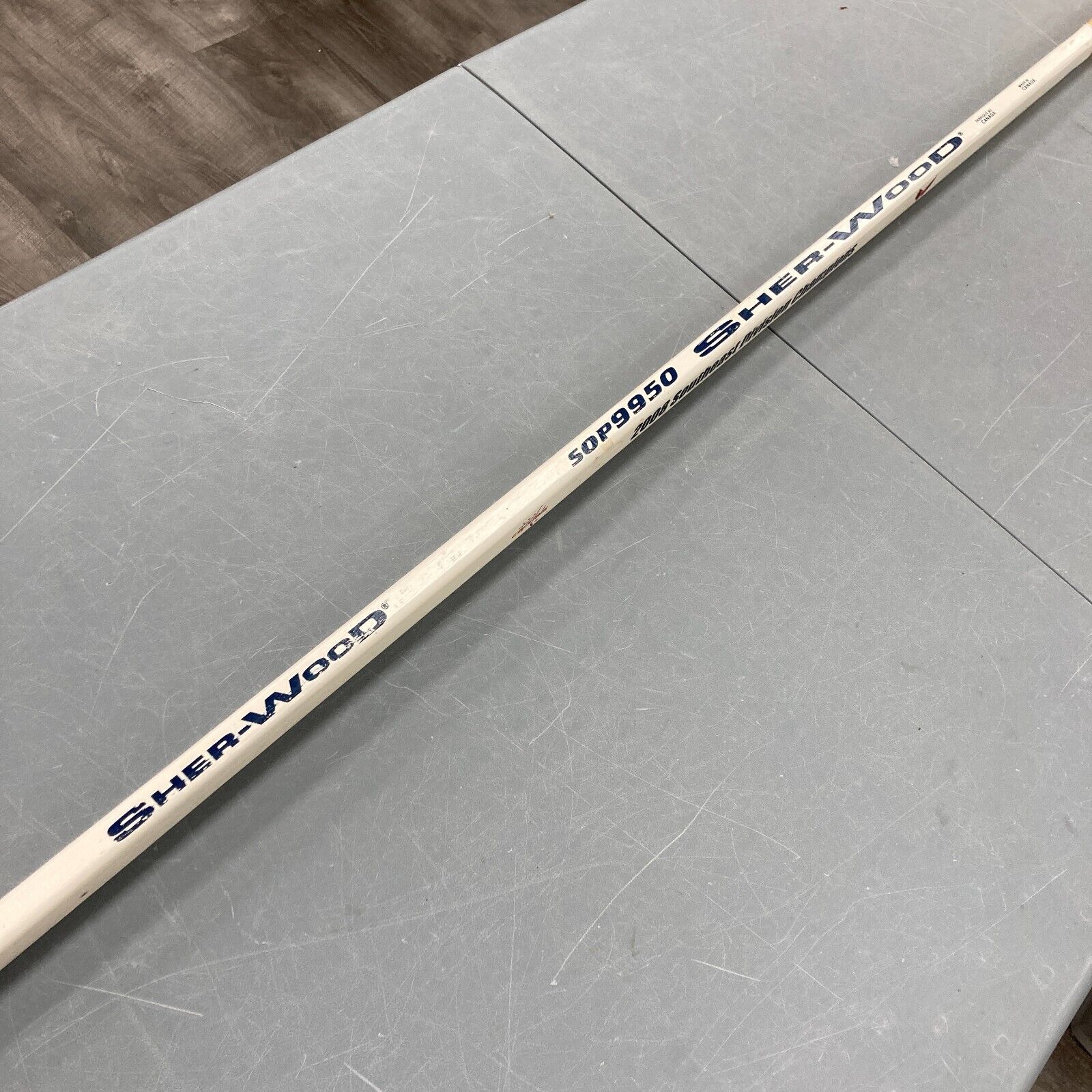 This Sherwood hockey stick is signed by the 1990 Edmonton Oilers, with a total of 29 signatures led by Mark Messier. Other signatures include: Ada...