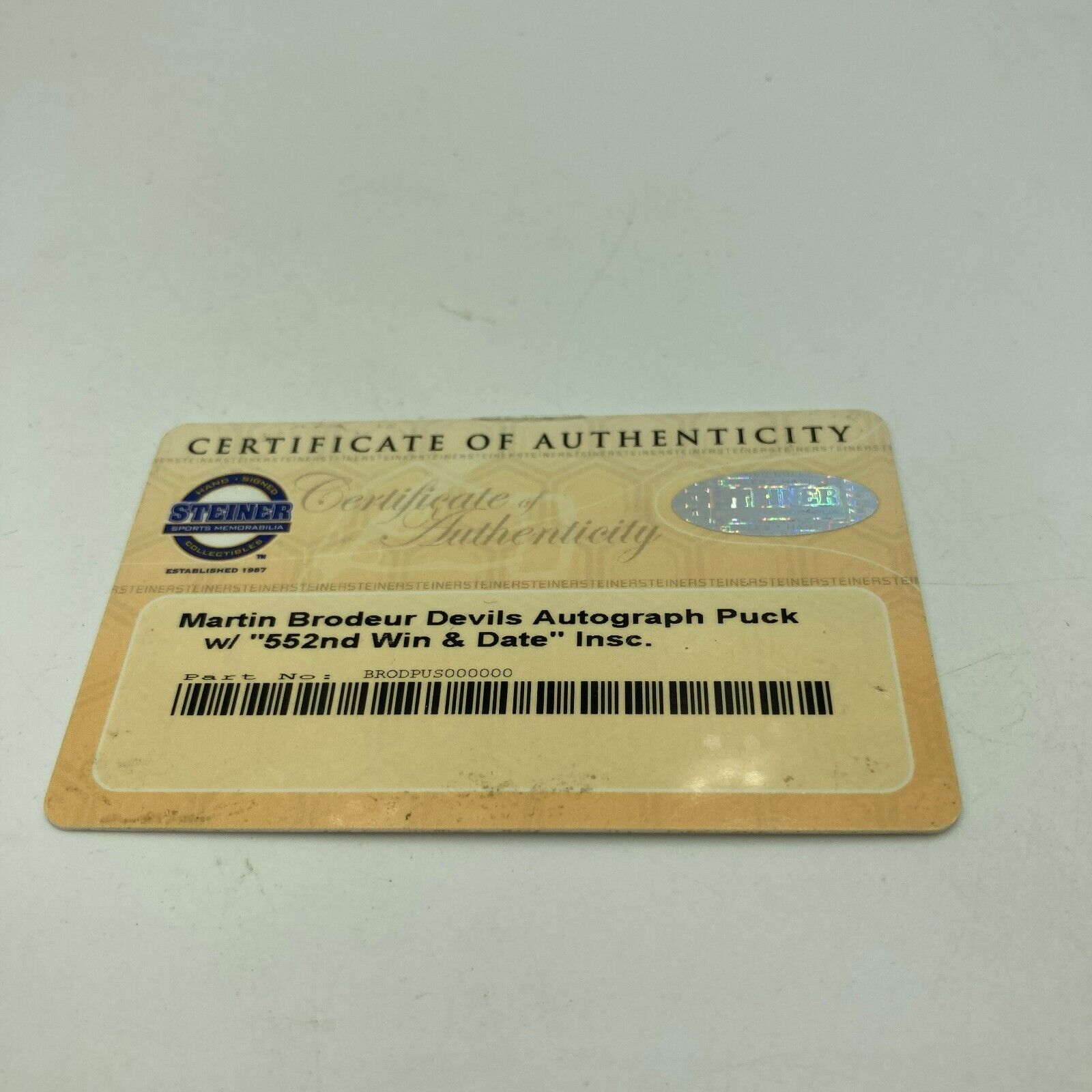 Martin Brodeur 552nd Win 3-17-2009 Signed NJ Devils Hockey Puck Steiner COA