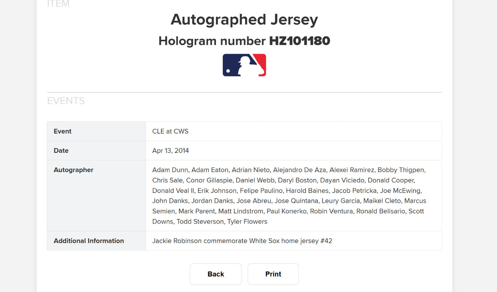 2014 Chicago White Sox Team Signed Jackie Robinson Day Authentic Majestic Jersey.