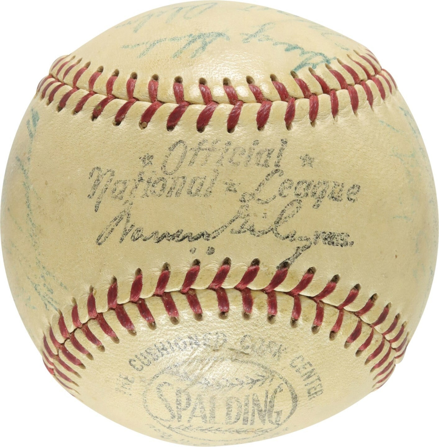 1954 Brooklyn Dodgers team-signed baseball features a total of 26 autographs. Official National League (Giles) ball hosts such Dodgers luminaries as: Jackie Robinson, Roy Campanella, Gil Hodges, Don Hoak, Walt Alston, Pee Wee Reese, Billy Cox, Dick Williams, Karl Spooner, Don Zimmer, Preacher Roe, Johnny Podres, and more.The Dodgers finished 2nd in the NL in '54 despite winning 92 games, falling short of the first place New York Giants. Comes with PSA LOA.