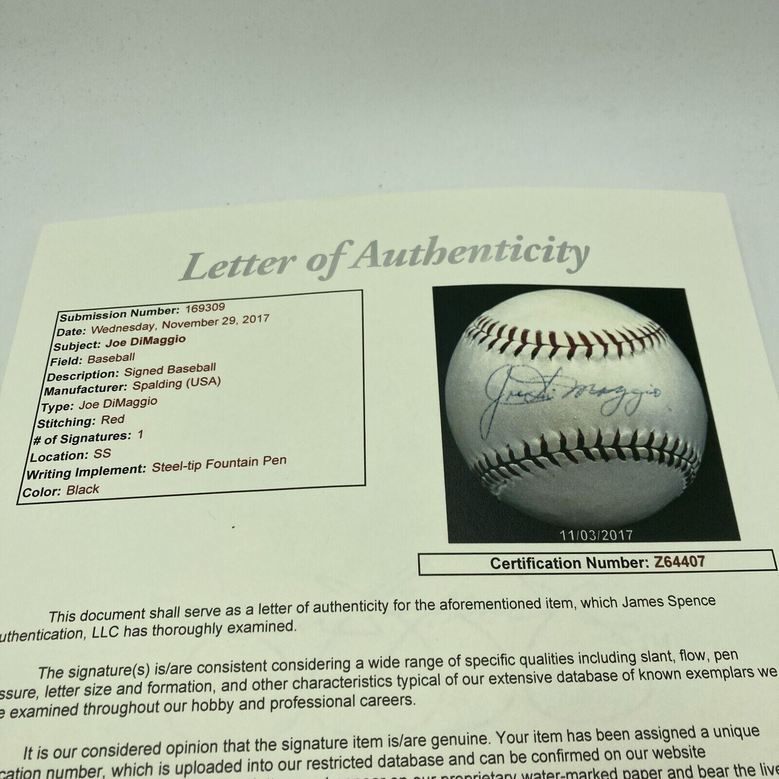 $1,999.00 Vintage 1940's Joe Dimaggio Single Signed Baseball JSA COA Vintage 1940's Joe Dimaggio Single Signed Official League Baseball JSA COA Comes with full letter JSA COA. D#49