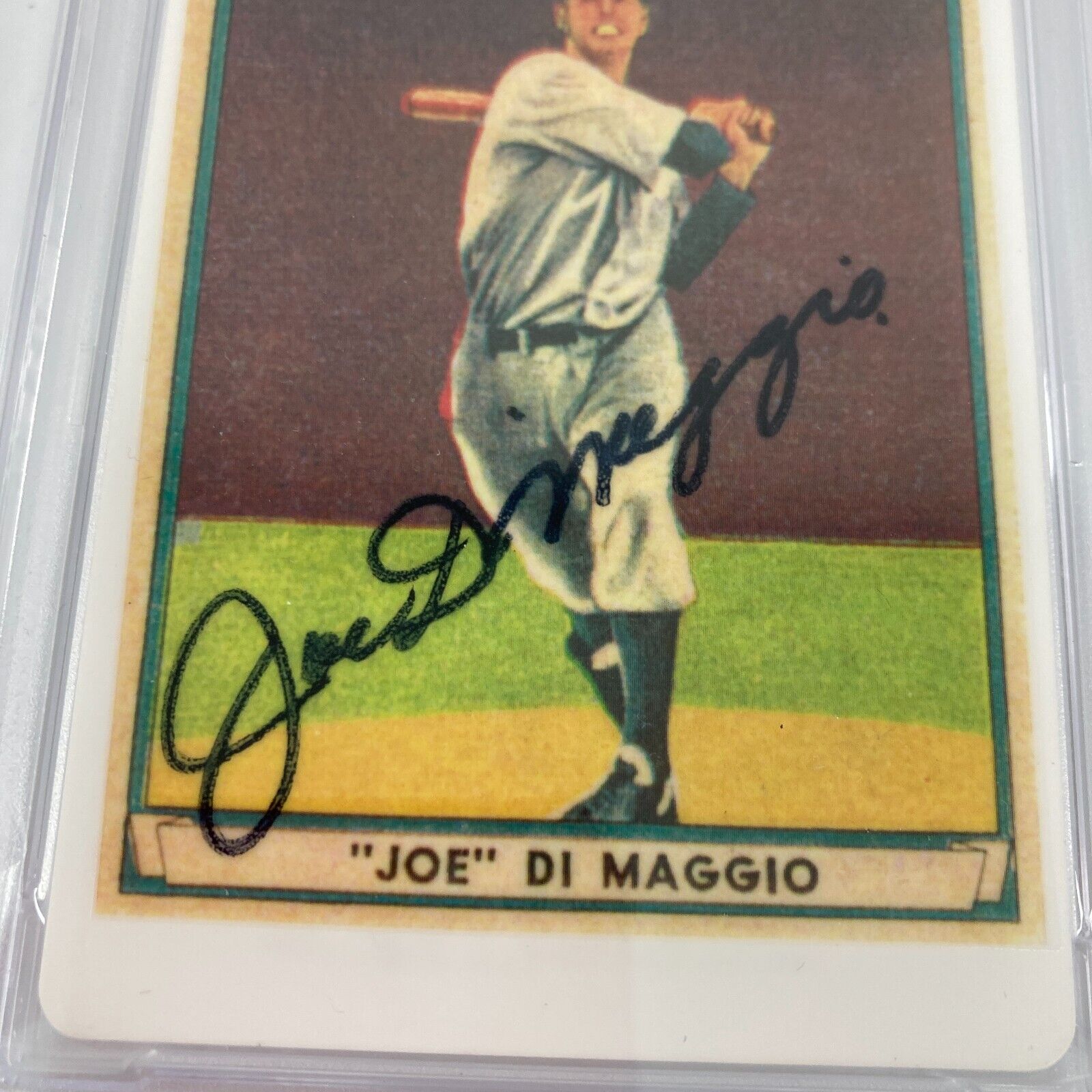 1941 Play Ball Joe Dimaggio Signed Porcelain Baseball Card.