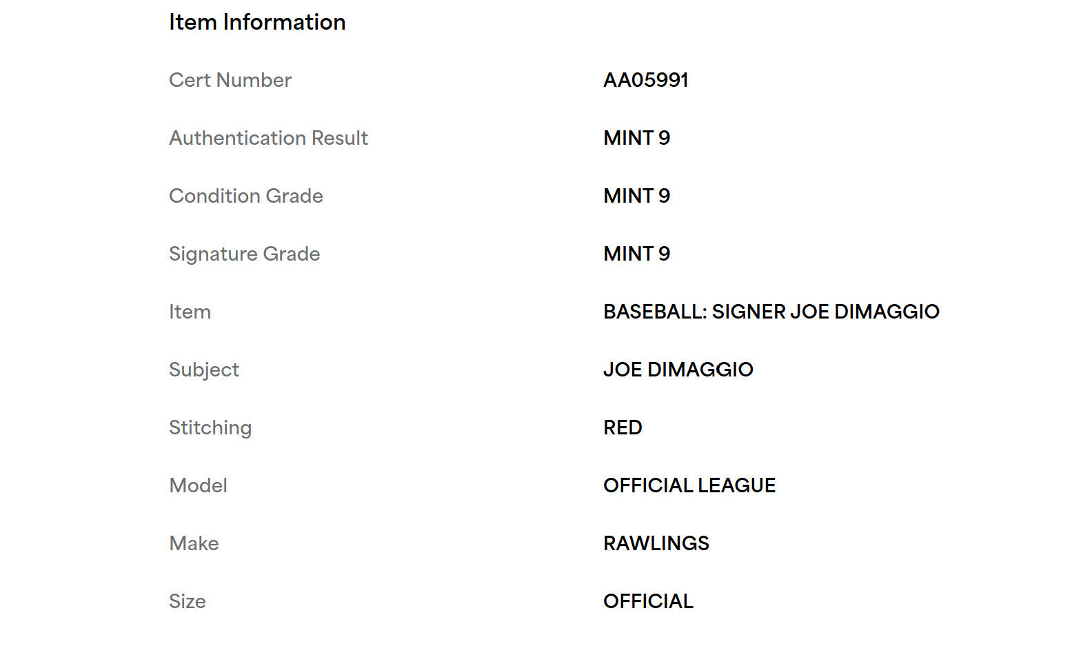 Click or scroll to zoom Tap or pinch to zoom Click or scroll to zoom Tap or pinch to zoom Click or scroll to zoom Tap or pinch to zoom Click or scroll to zoom Tap or pinch to zoom Click or scroll to zoom Tap or pinch to zoom Click or scroll to zoom Tap or pinch to zoom Click or scroll to zoom Tap or pinch to zoom Click or scroll to zoom Tap or pinch to zoom Click or scroll to zoom Tap or pinch to zoom Beautiful Joe Dimaggio Signed American League Baseball PSA Graded MINT 9 $1,499.00 1 2 3 4 5 6 7 8 9 10+ Quantity Quantity Add to cart This item is a recurring or deferred purchase. By continuing, I agree to the cancellation policy and authorize you to charge my payment method at the prices, frequency and dates listed on this page until my order is fulfilled or I cancel, if permitted. Beautiful Joe Dimaggio Signed American League Baseball PSA Graded MINT 9 D#52