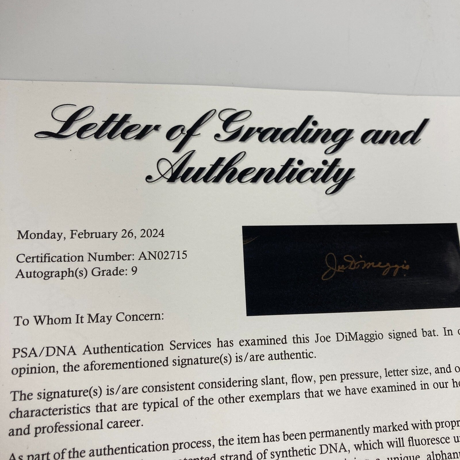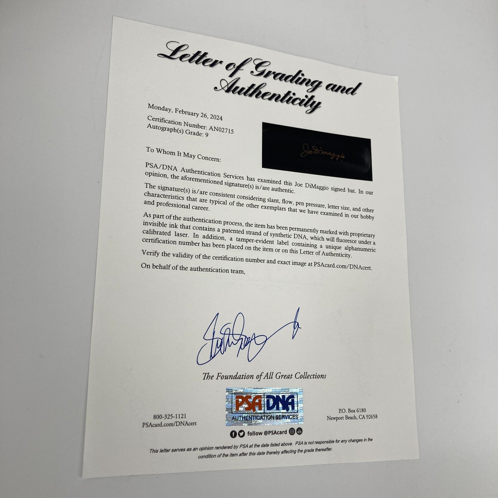Comes with full letter PSA DNA COA.