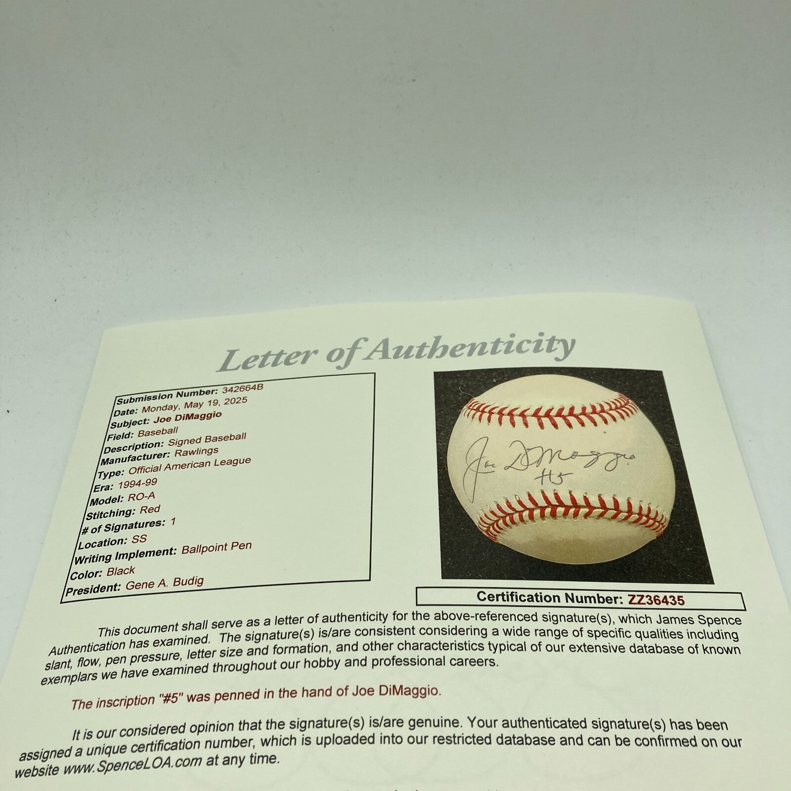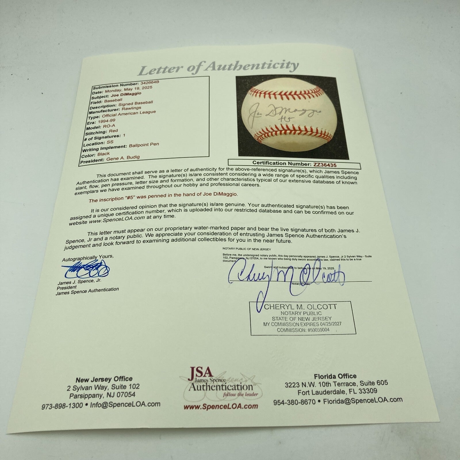 Joe Dimaggio Signed Official American League Baseball.Comes with full letter JSA COA. D#75