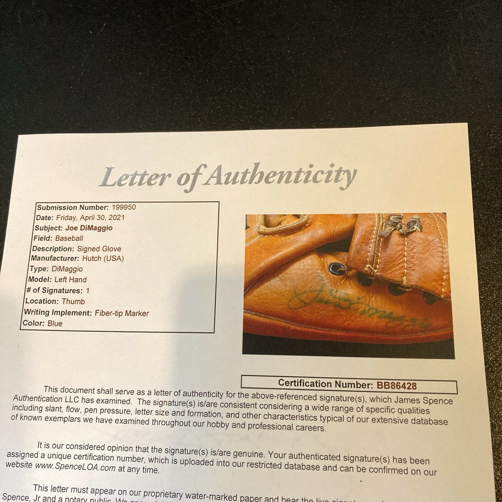Joe Dimaggio Signed 1940's Game Model Baseball Glove With JSA COA