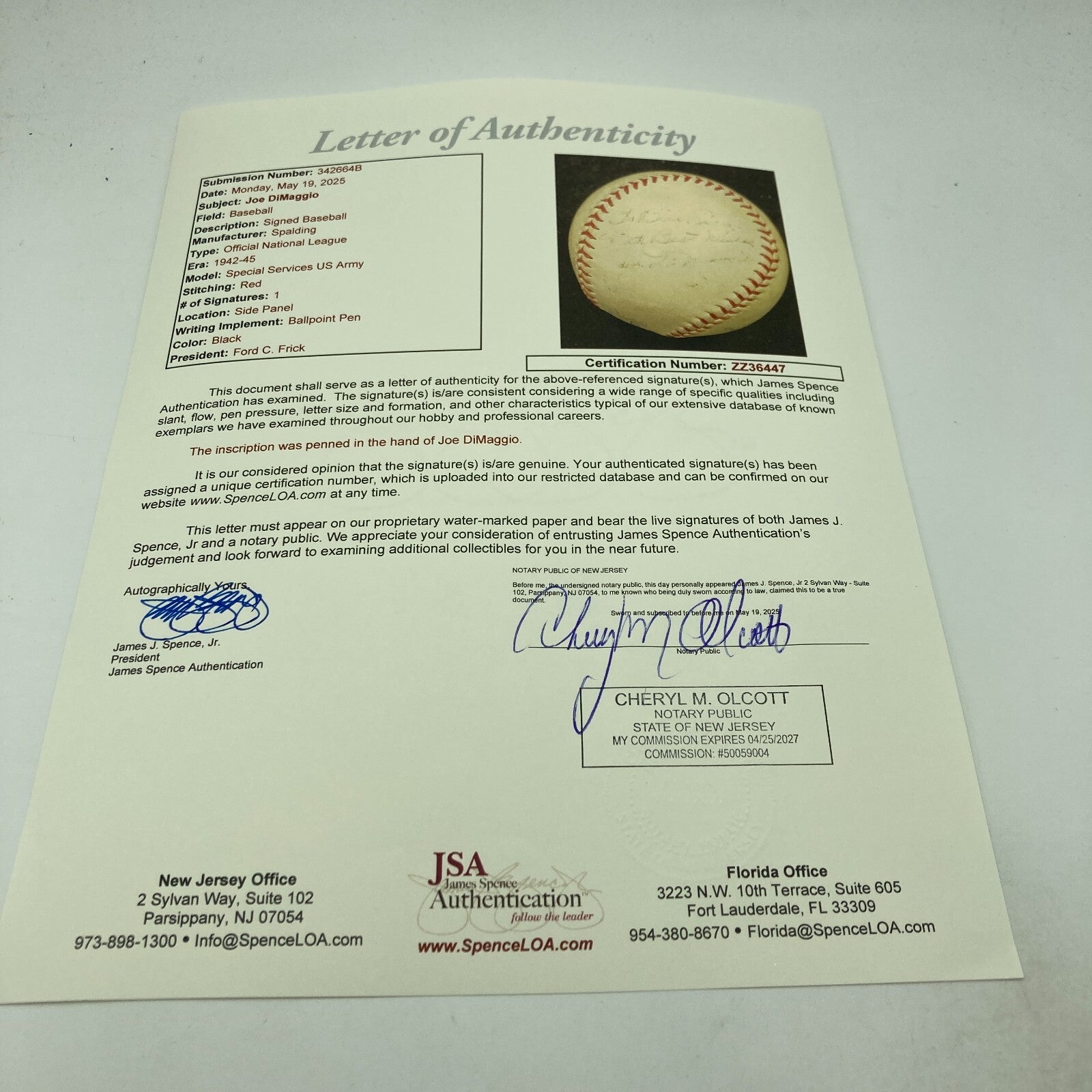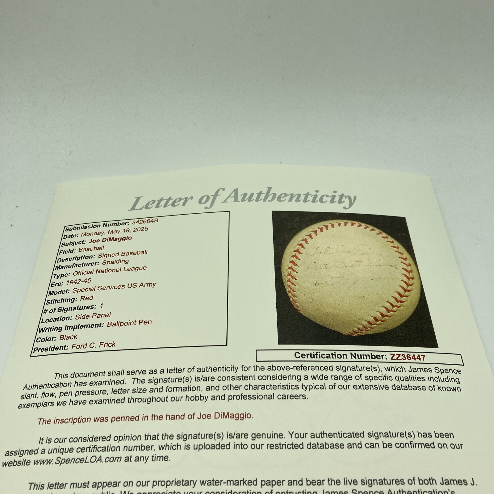 Joe Dimaggio Signed World War 2 Official National League Baseball