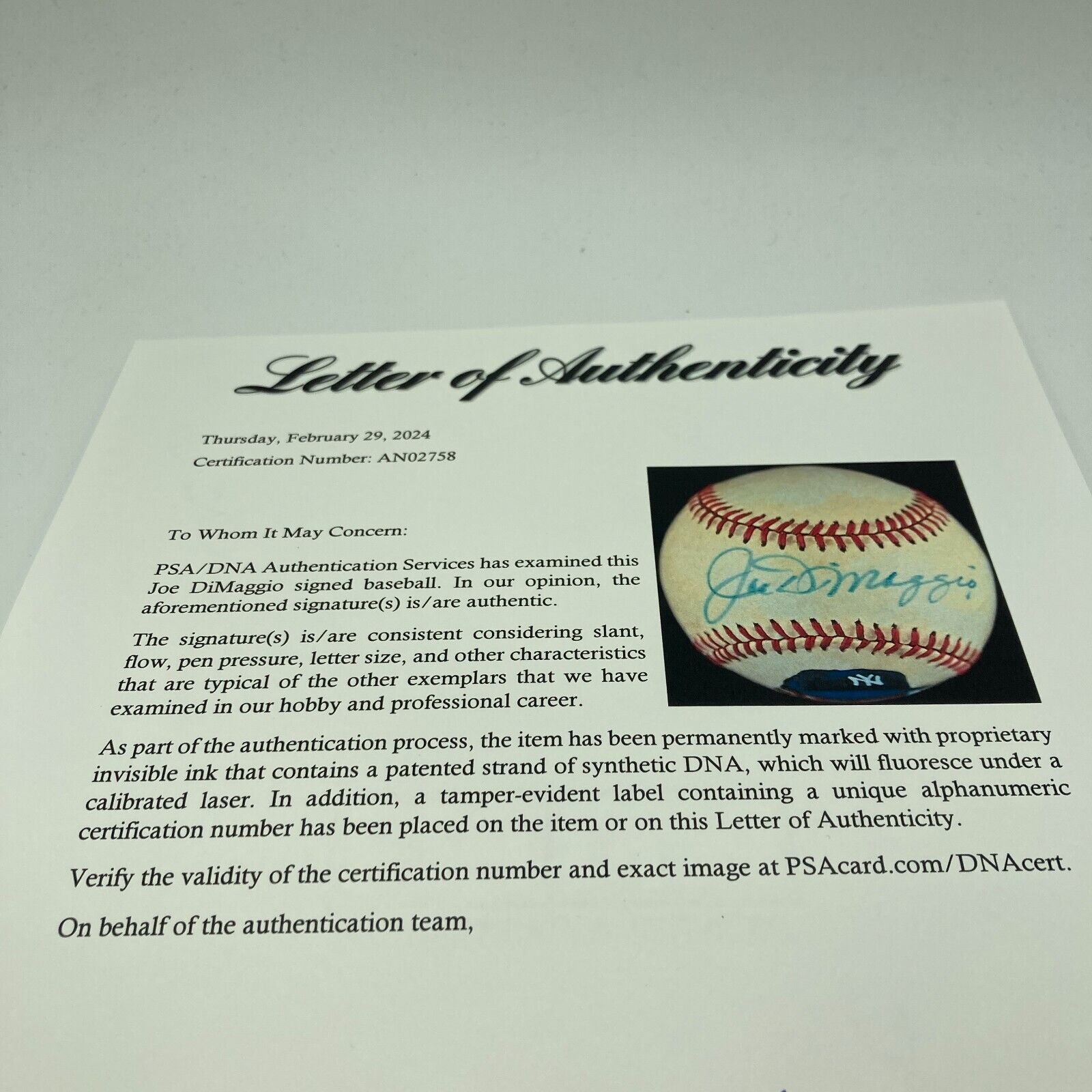 Joe Dimaggio Signed Official American League Baseball.Comes with full letter JSA COA. D#75